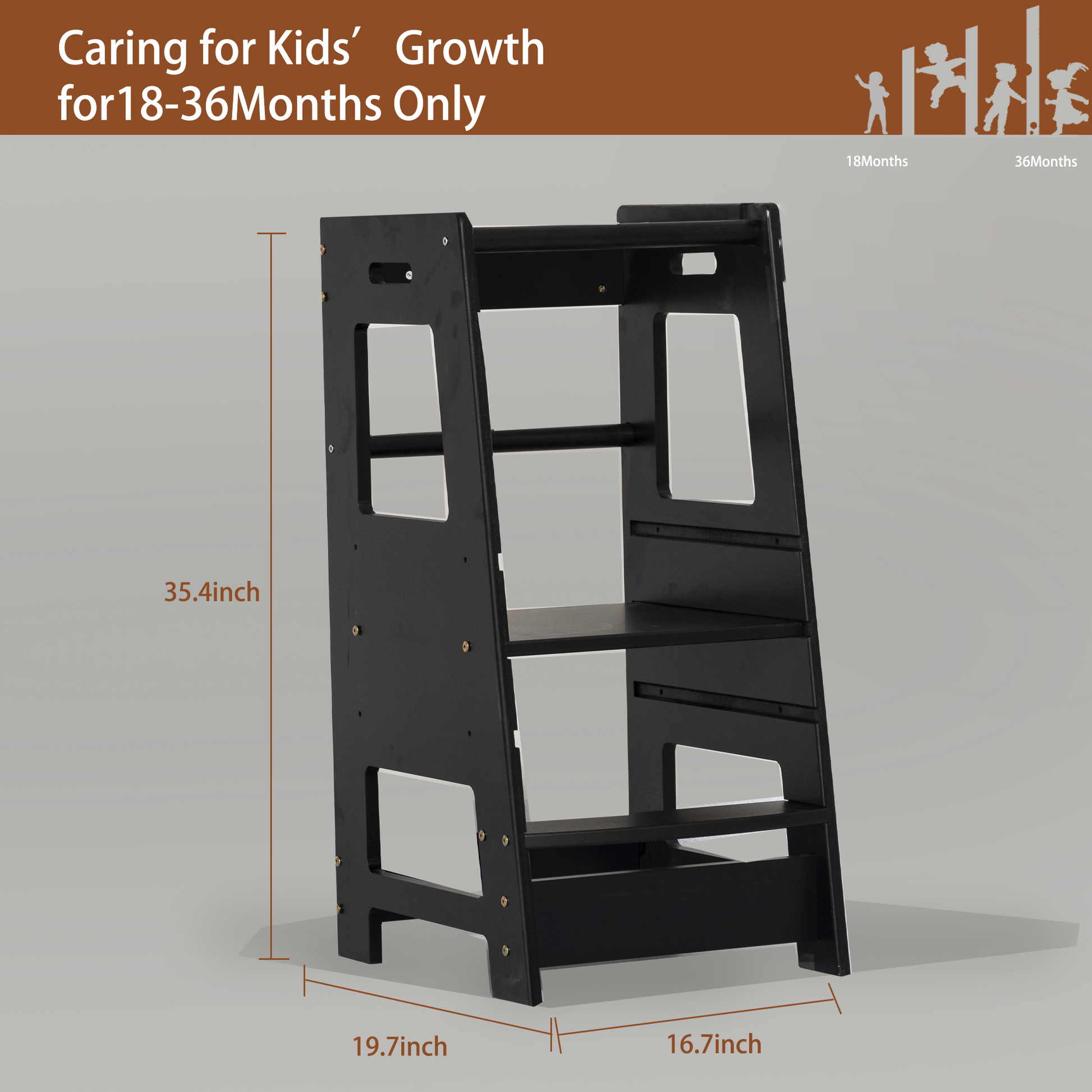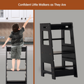 Toddler Standing Tower Kitchen Step Stool For Kid'S Adjustable Height Learning Stool Helper Removable Anti Drop Safety Rail Stool For Bedroom, Bathroom, Black Black Wood