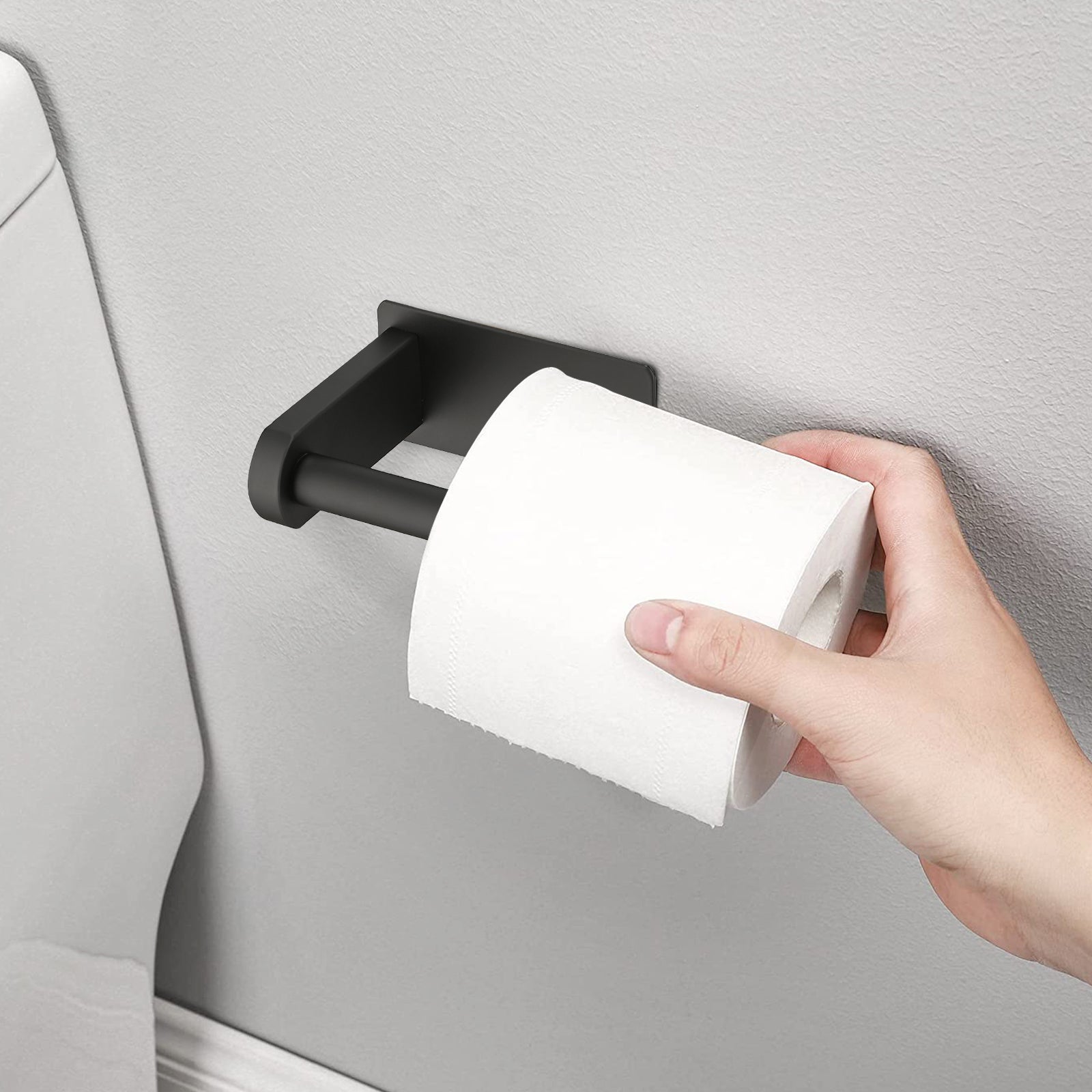 Toilet Paper Holder Self Adhesive, Stainless Steel Rustproof Adhesive Toilet Roll Holder No Drilling Matte Black Stainless Steel
