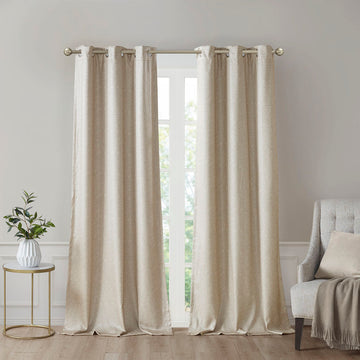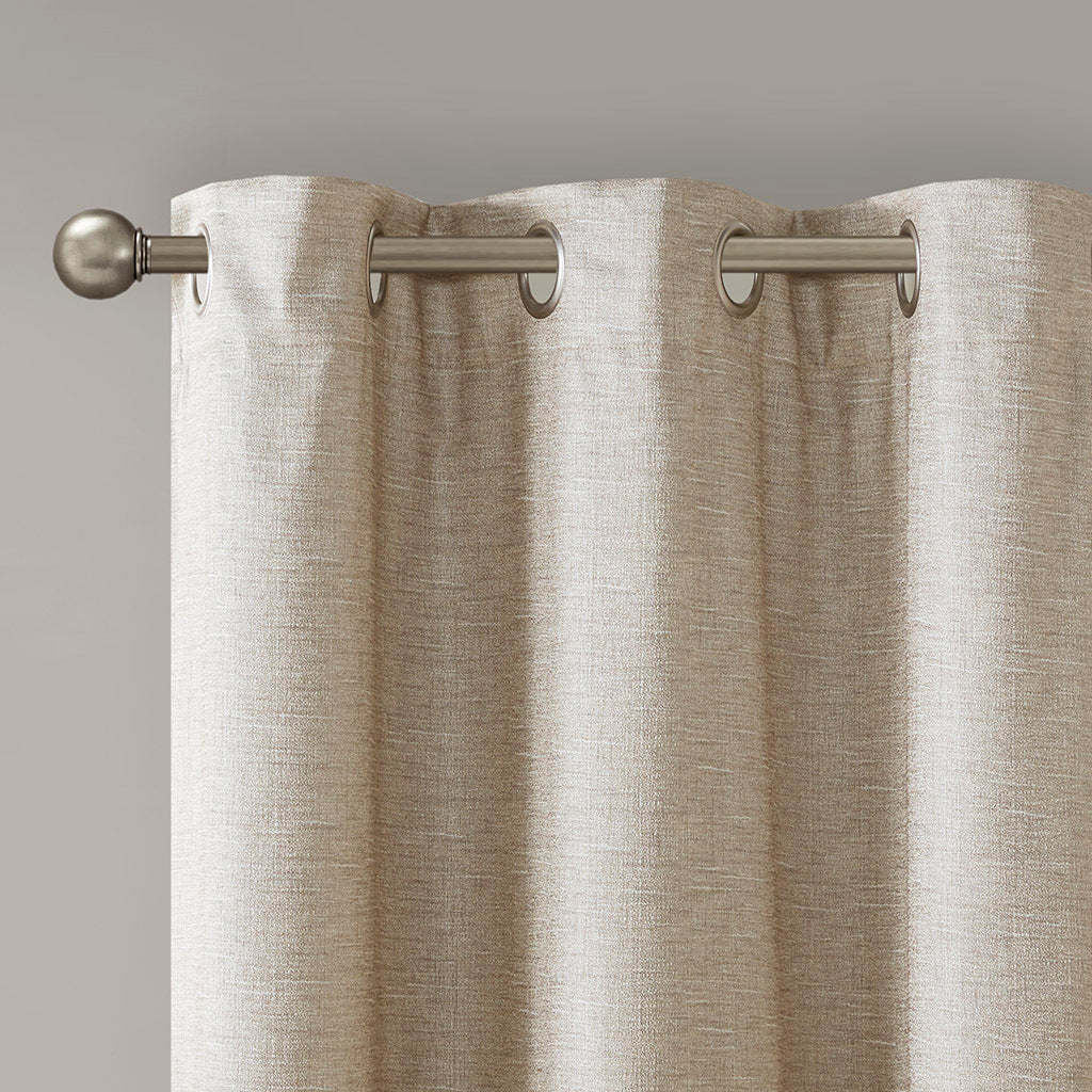 Tonal Printed Faux Silk Total Blackout Curtain Panel Pair 2 Pcs Window Panels Taupe Polyester
