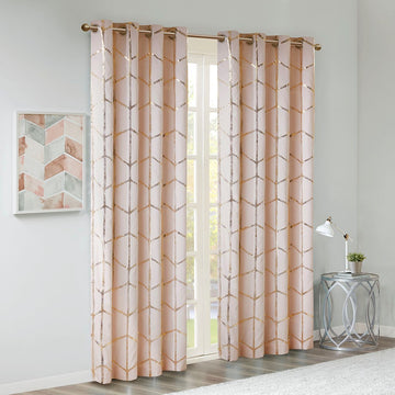 Total Blackout Metallic Print Grommet Top Curtain Panel Only 1 Pc Panel Blush Gold Microfiber