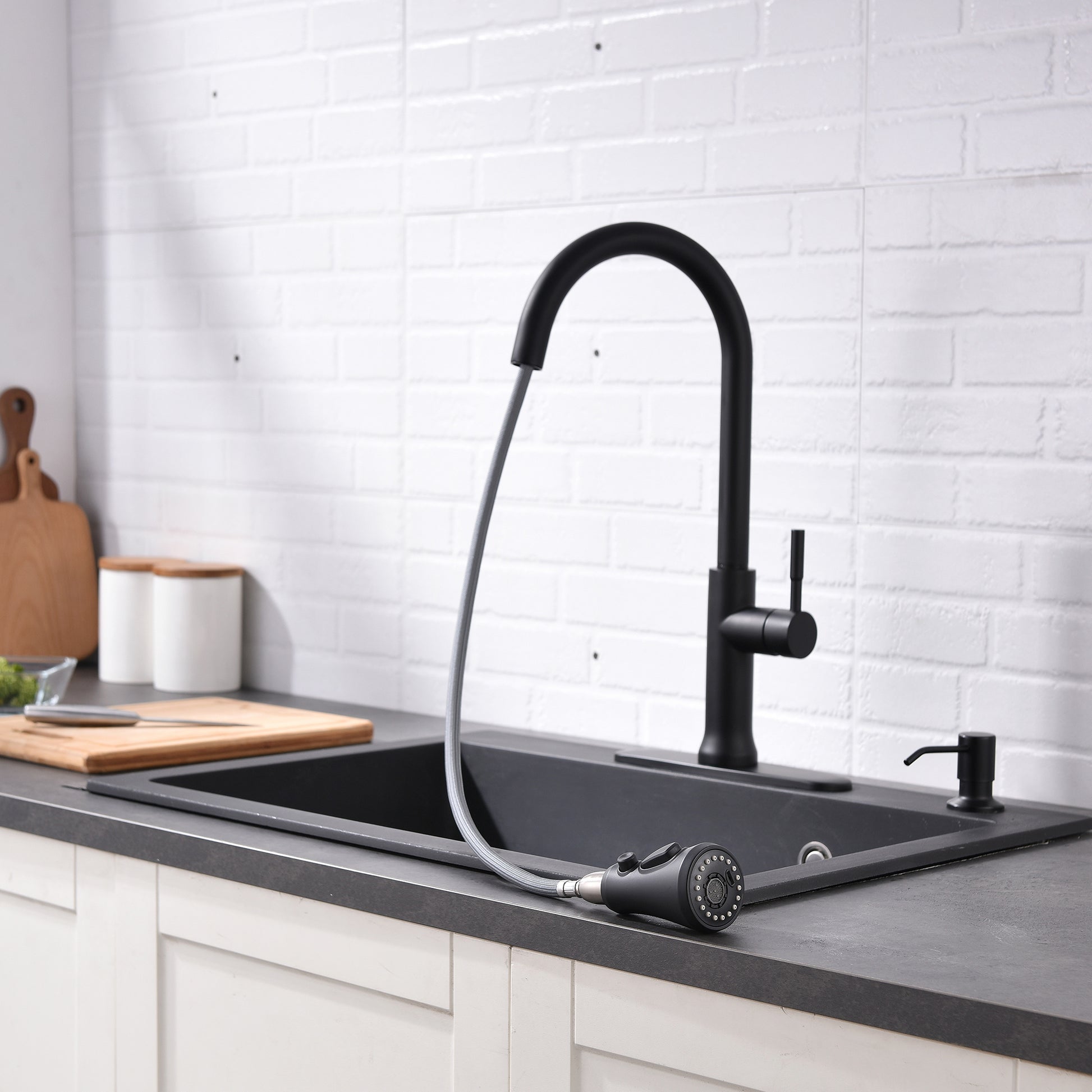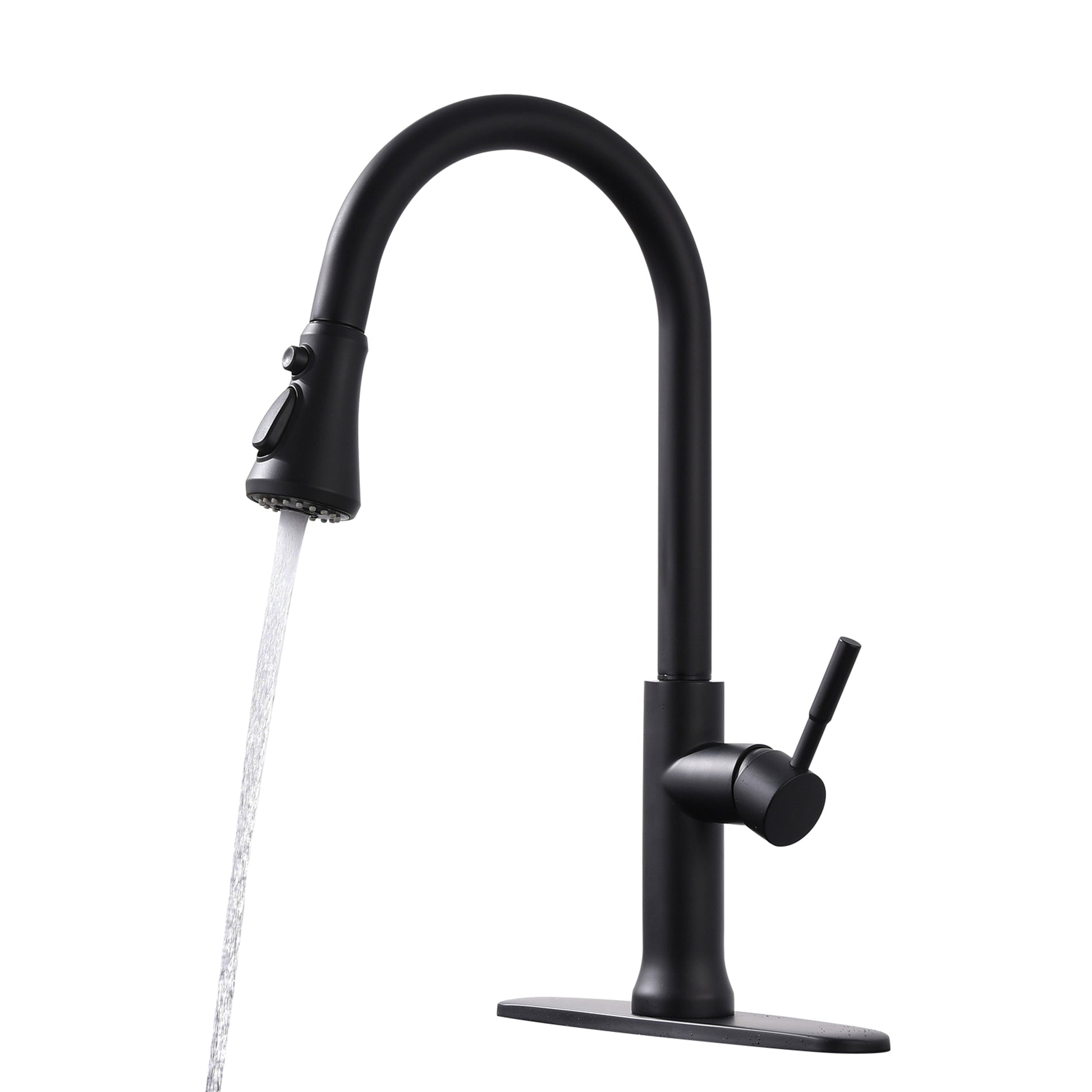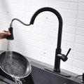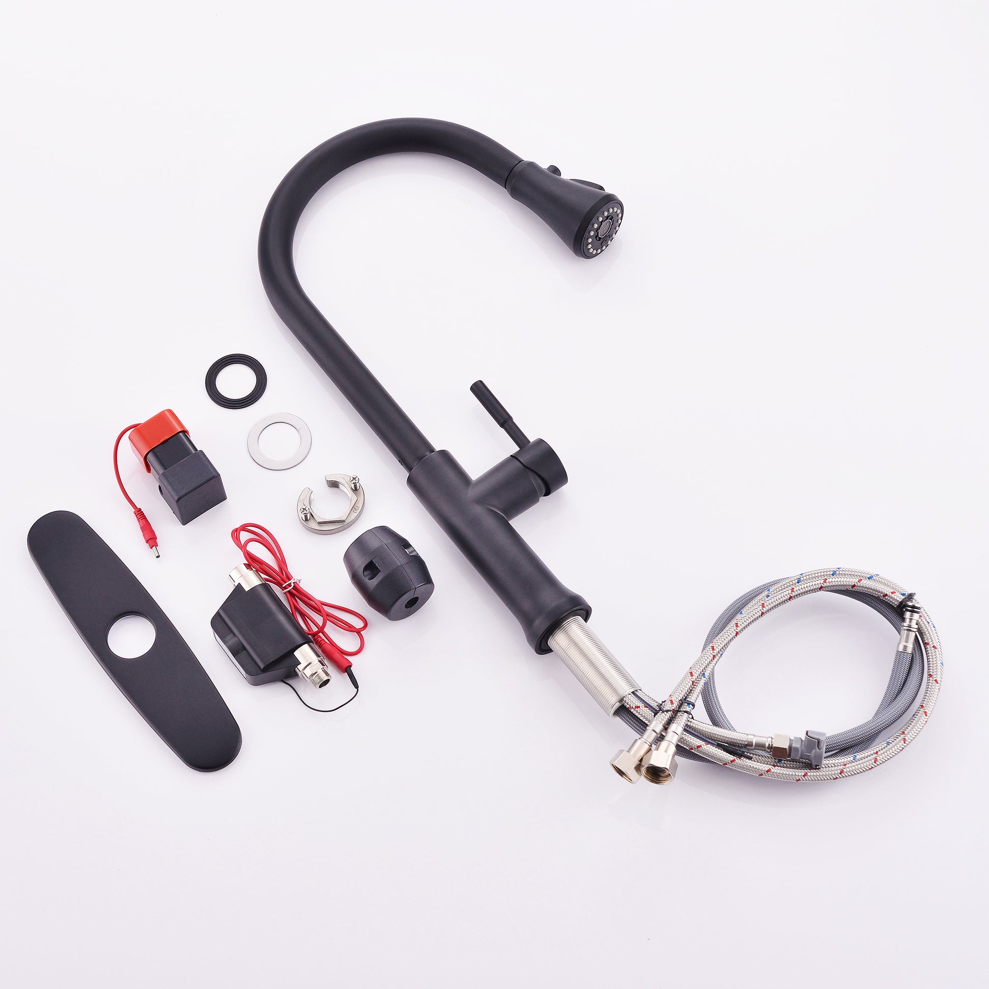 Touch On Kitchen Faucet With Pull Down Sprayer Single Handle Brass Touch Activated Kitchen Sink Faucet With 2 Way Pull Out Sprayer, Matte Black Black Kitchen Classic,Contemporary Ceramic Brass