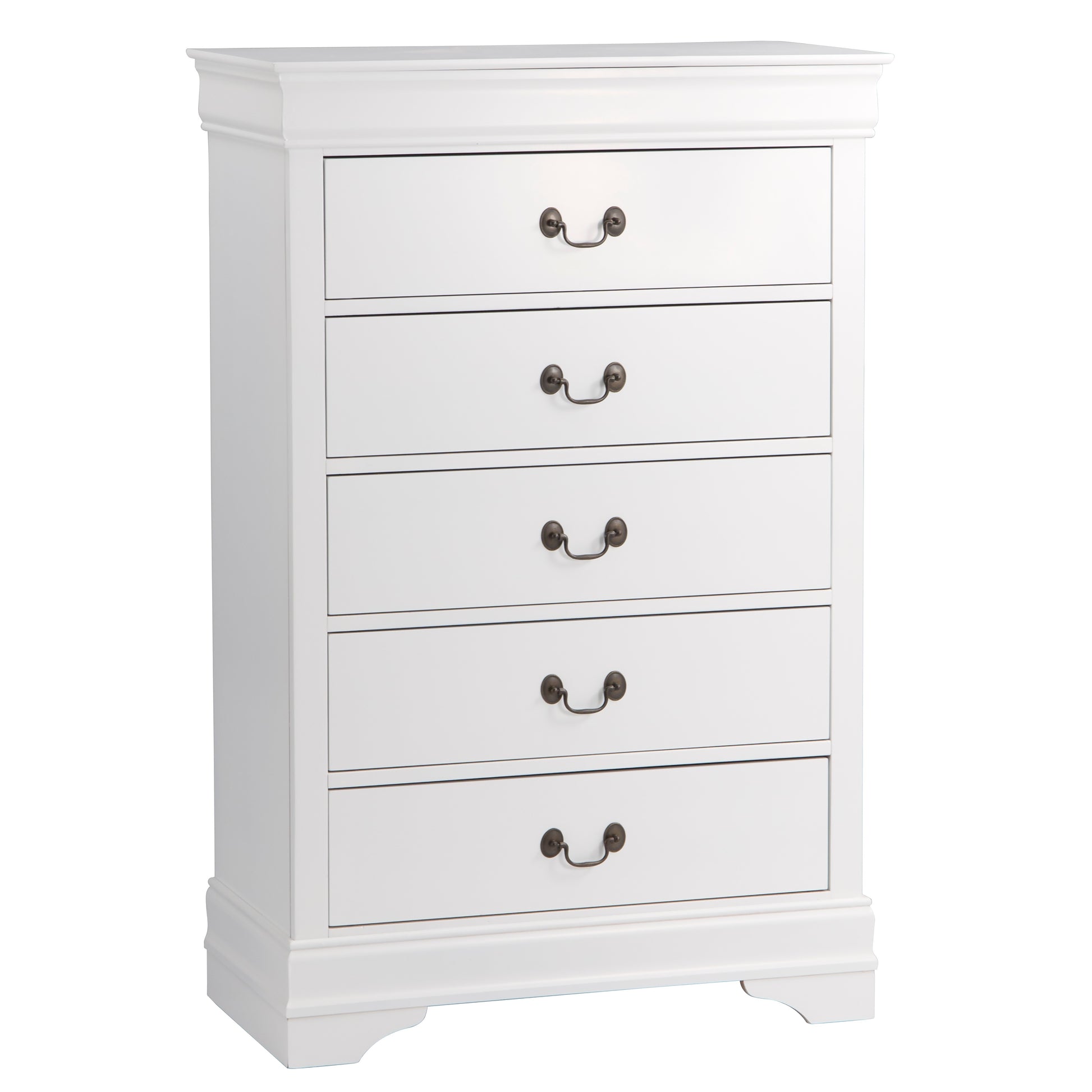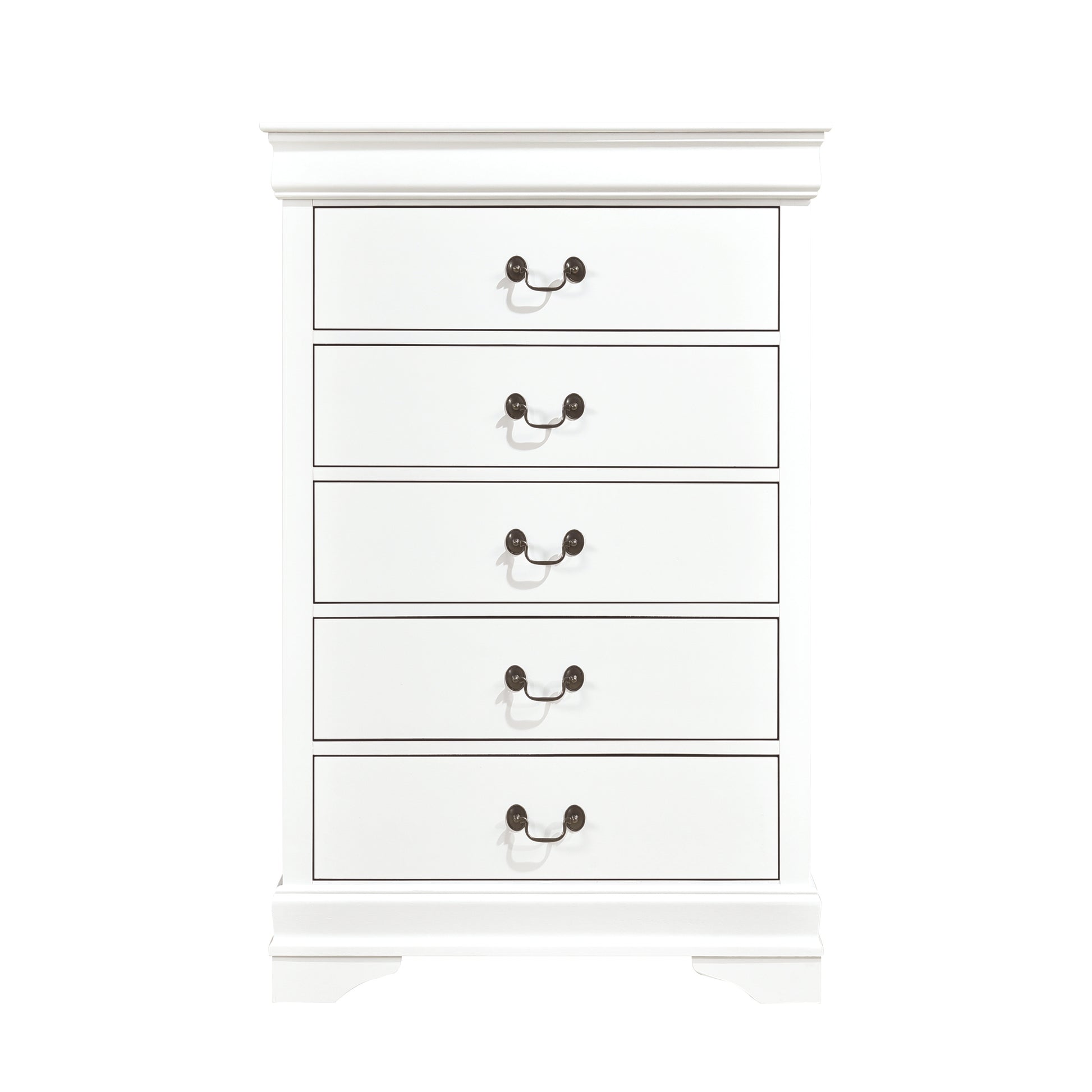 Traditional Design White Finish 1Pc Chest Of 5 Drawers Antique Drop Handles Drawers Bedroom Furniture White Bedroom Traditional Wood