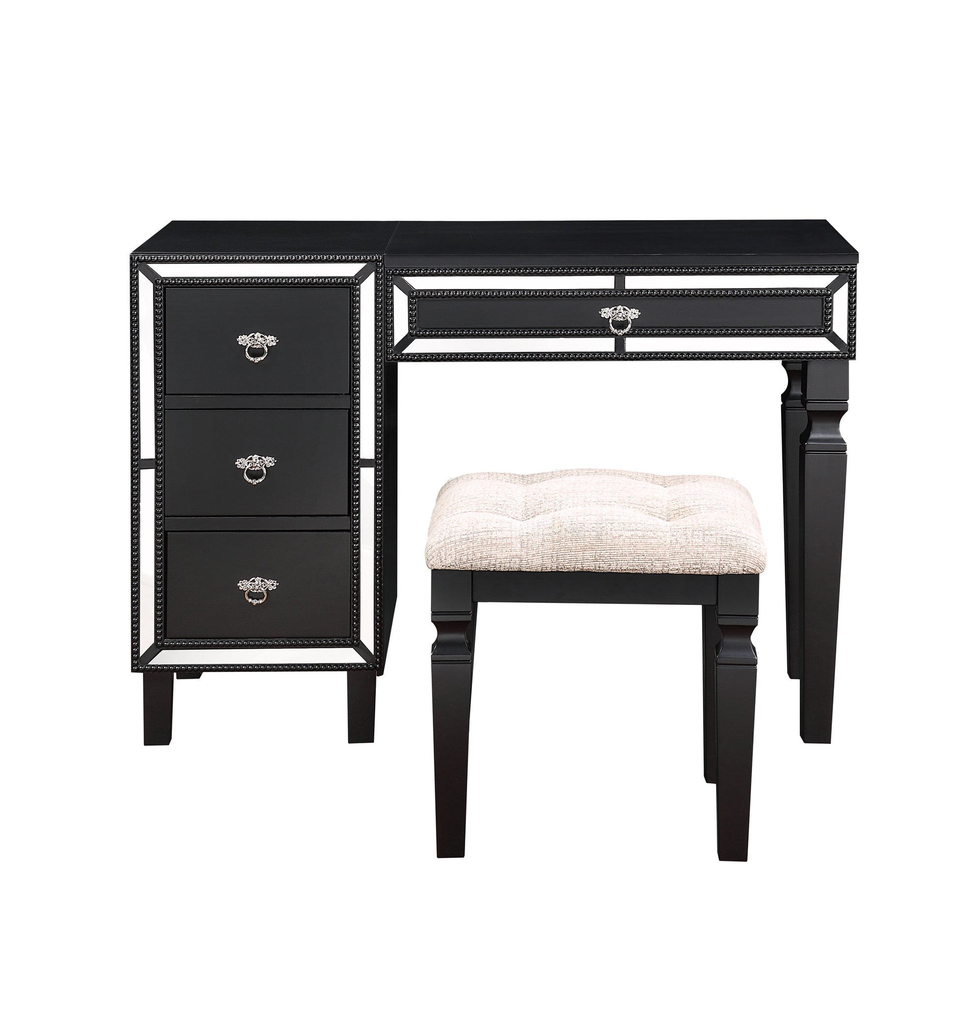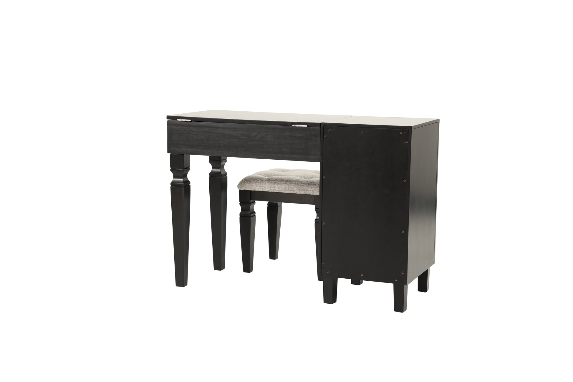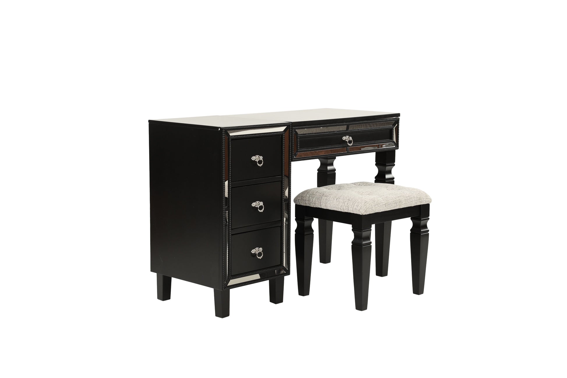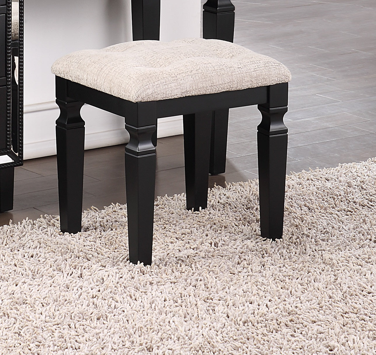 Traditional Formal Black Color Vanity Set W Stool Storage Drawers 1Pc Bedroom Furniture Set Tufted Seat Stool Black Bedroom Traditional Poplar Rubber Wood