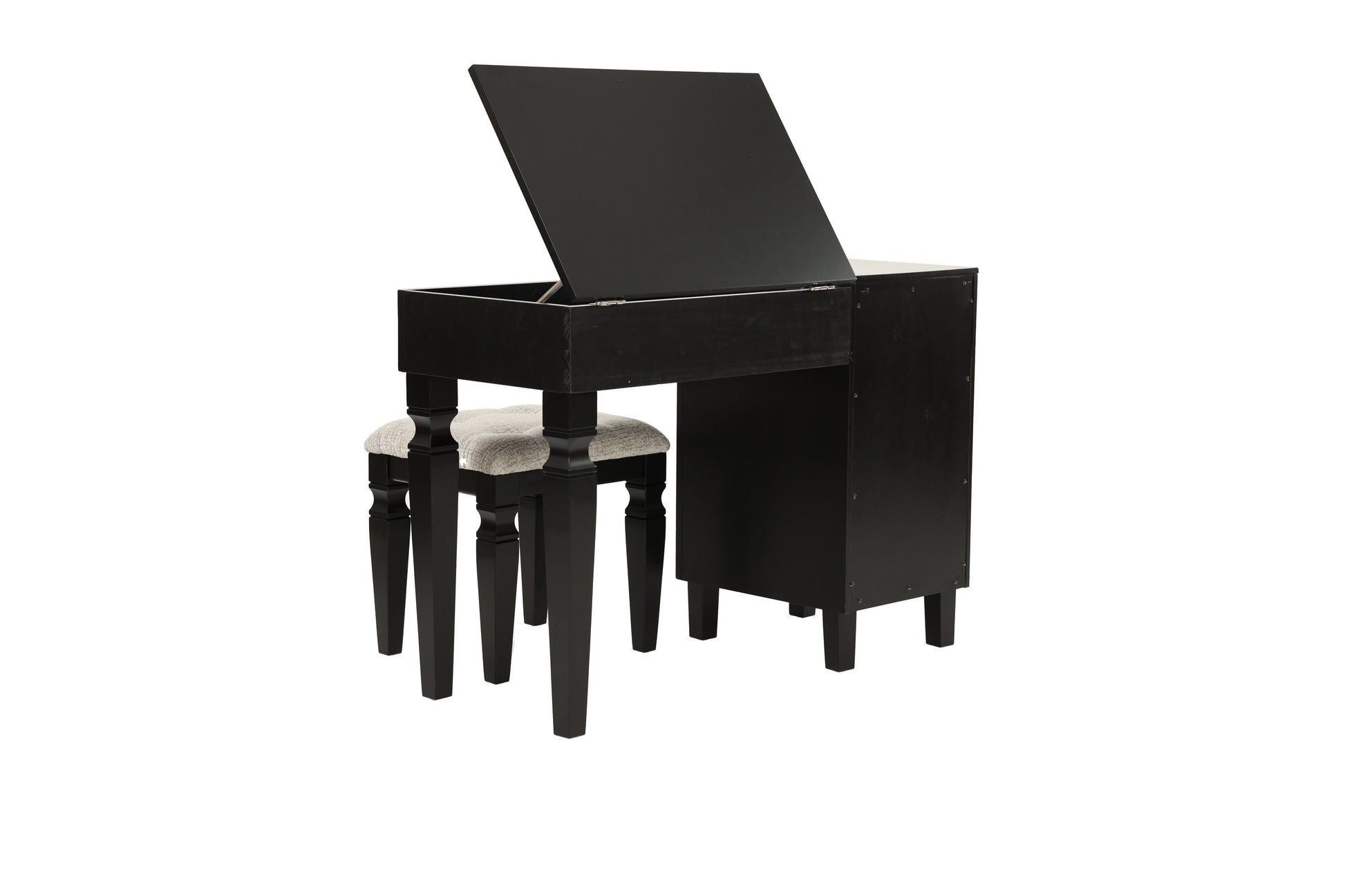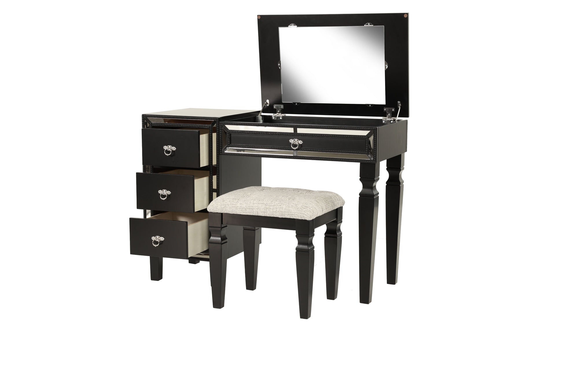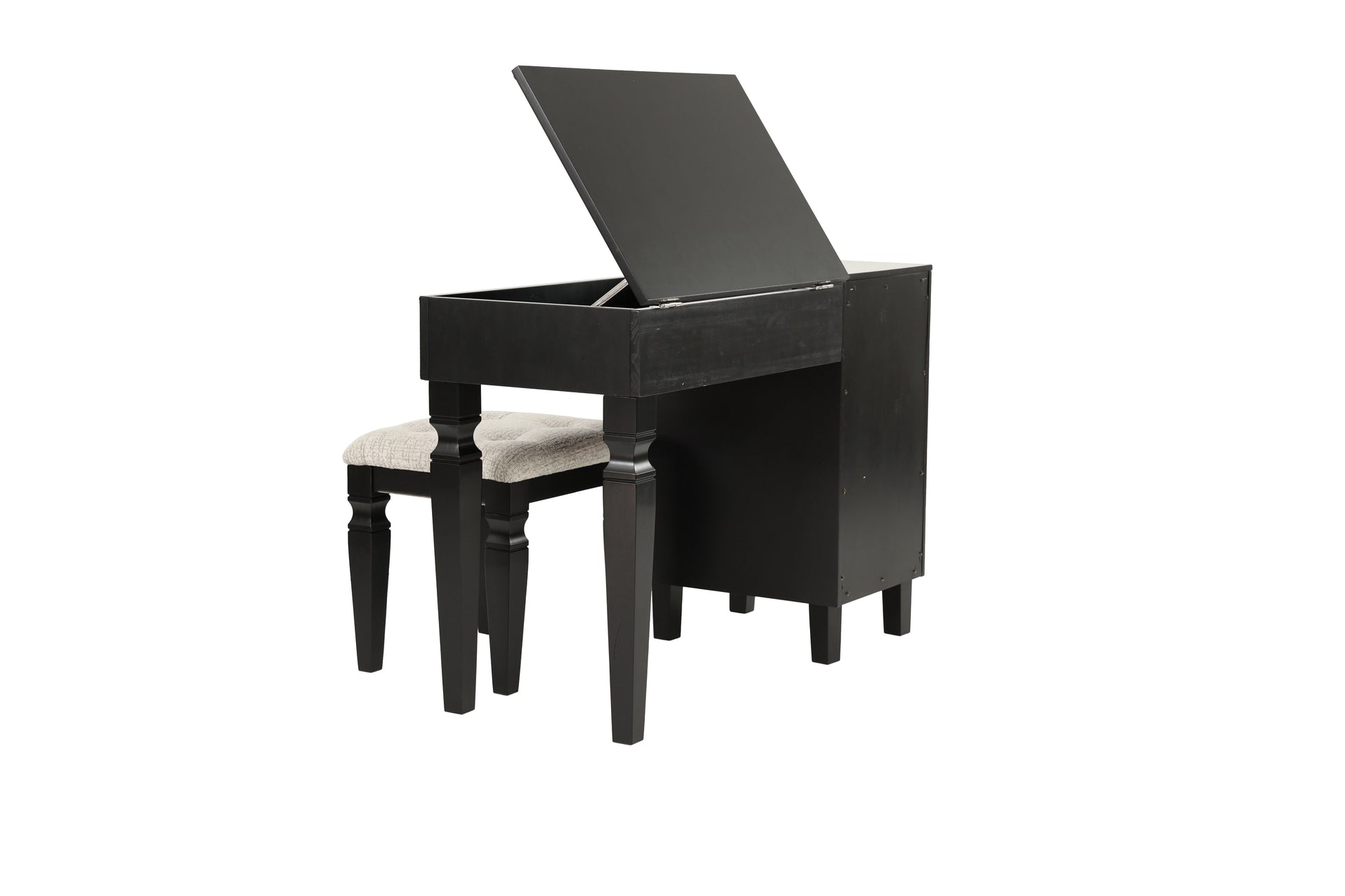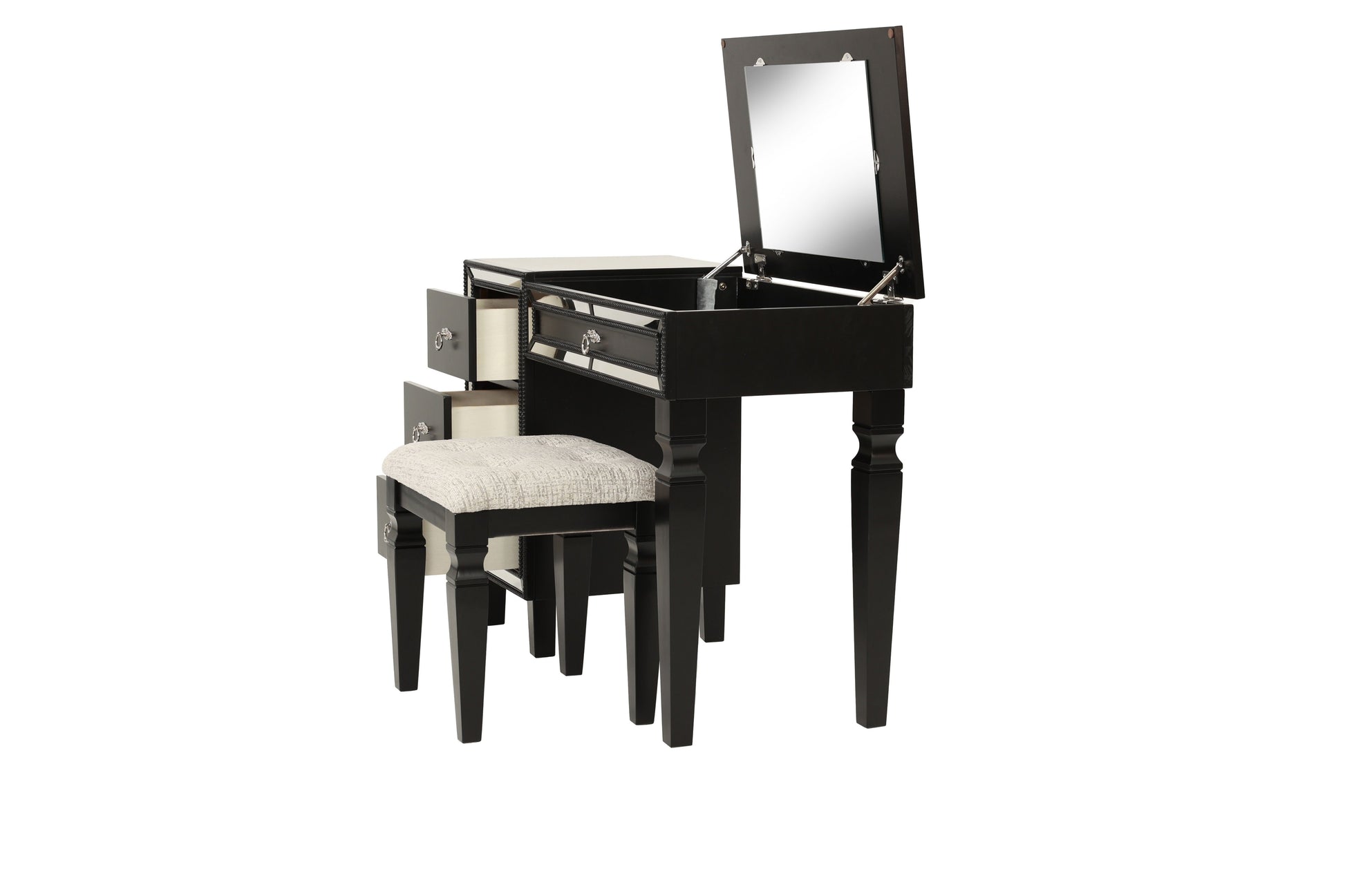 Traditional Formal Black Color Vanity Set W Stool Storage Drawers 1Pc Bedroom Furniture Set Tufted Seat Stool Black Bedroom Traditional Poplar Rubber Wood