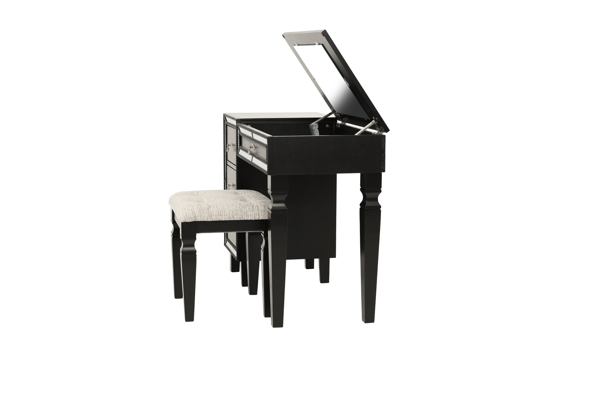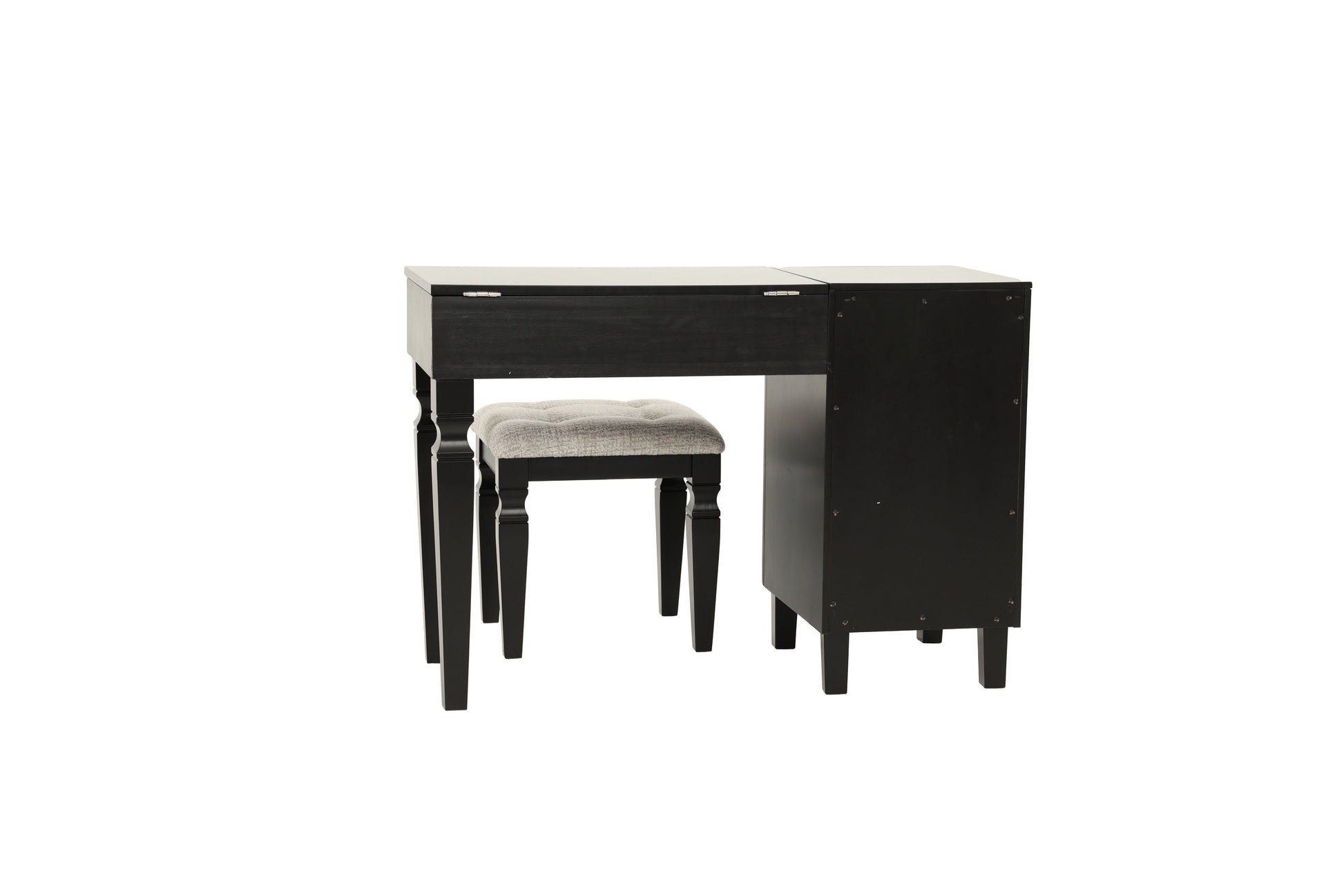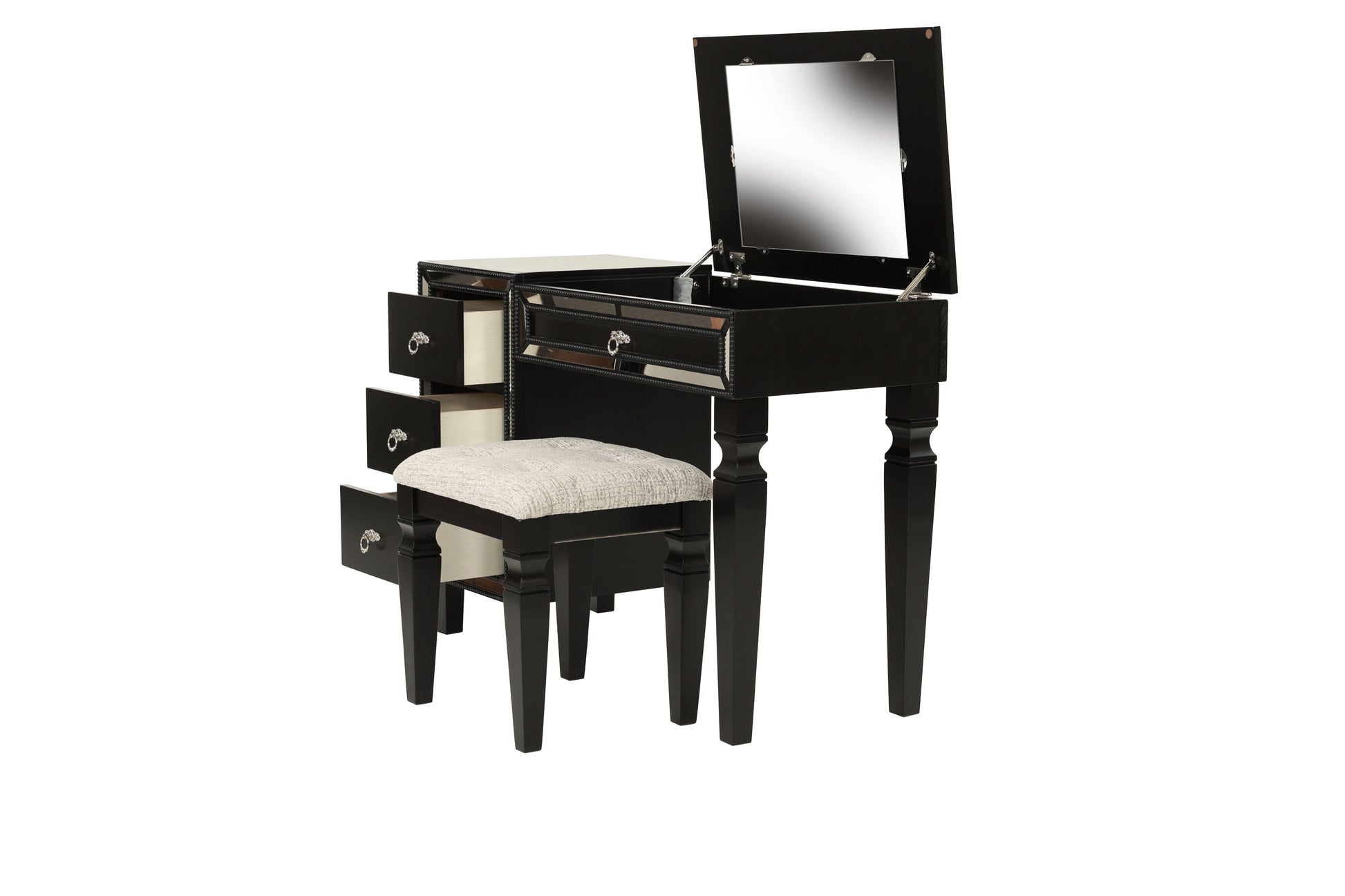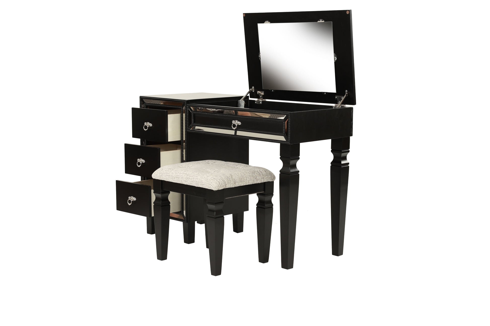 Traditional Formal Black Color Vanity Set W Stool Storage Drawers 1Pc Bedroom Furniture Set Tufted Seat Stool Black Bedroom Traditional Poplar Rubber Wood