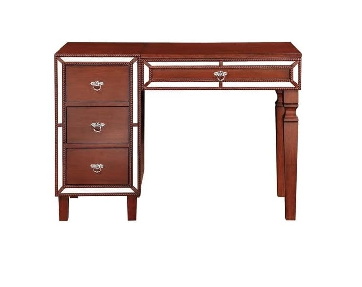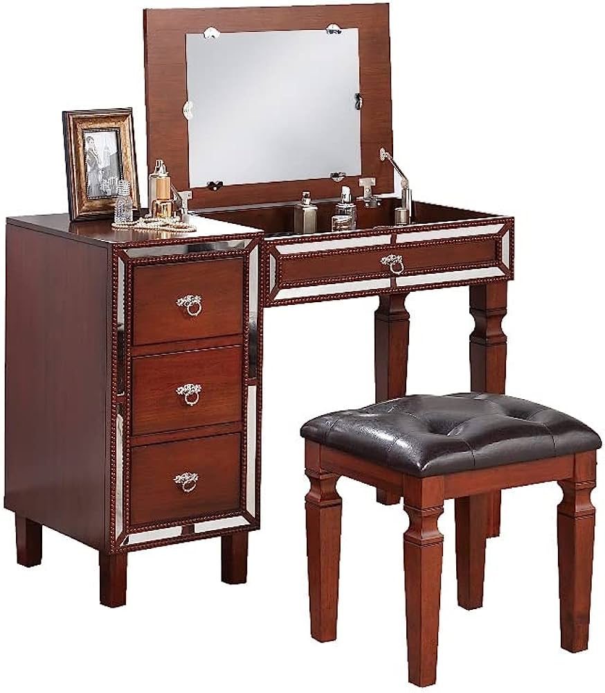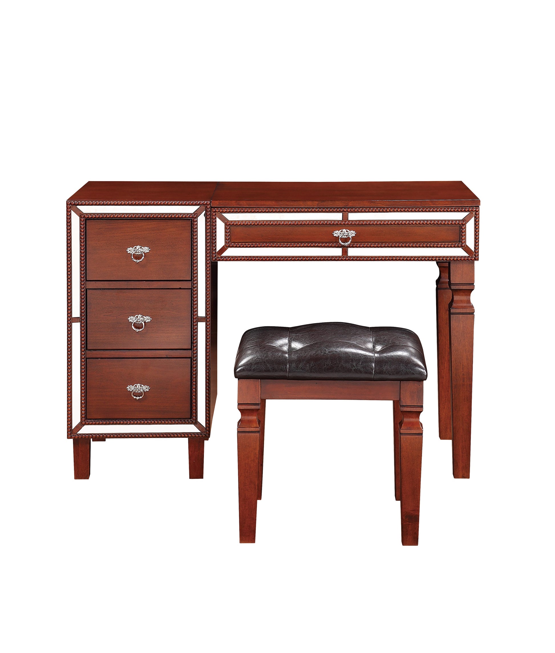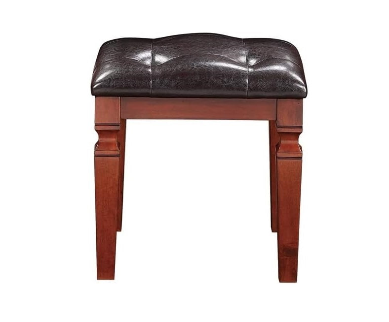 Traditional Formal Cherry Color Vanity Set W Stool Storage Drawers 1Pc Bedroom Furniture Set Tufted Seat Stool Cherry Bedroom Traditional Poplar Rubber Wood
