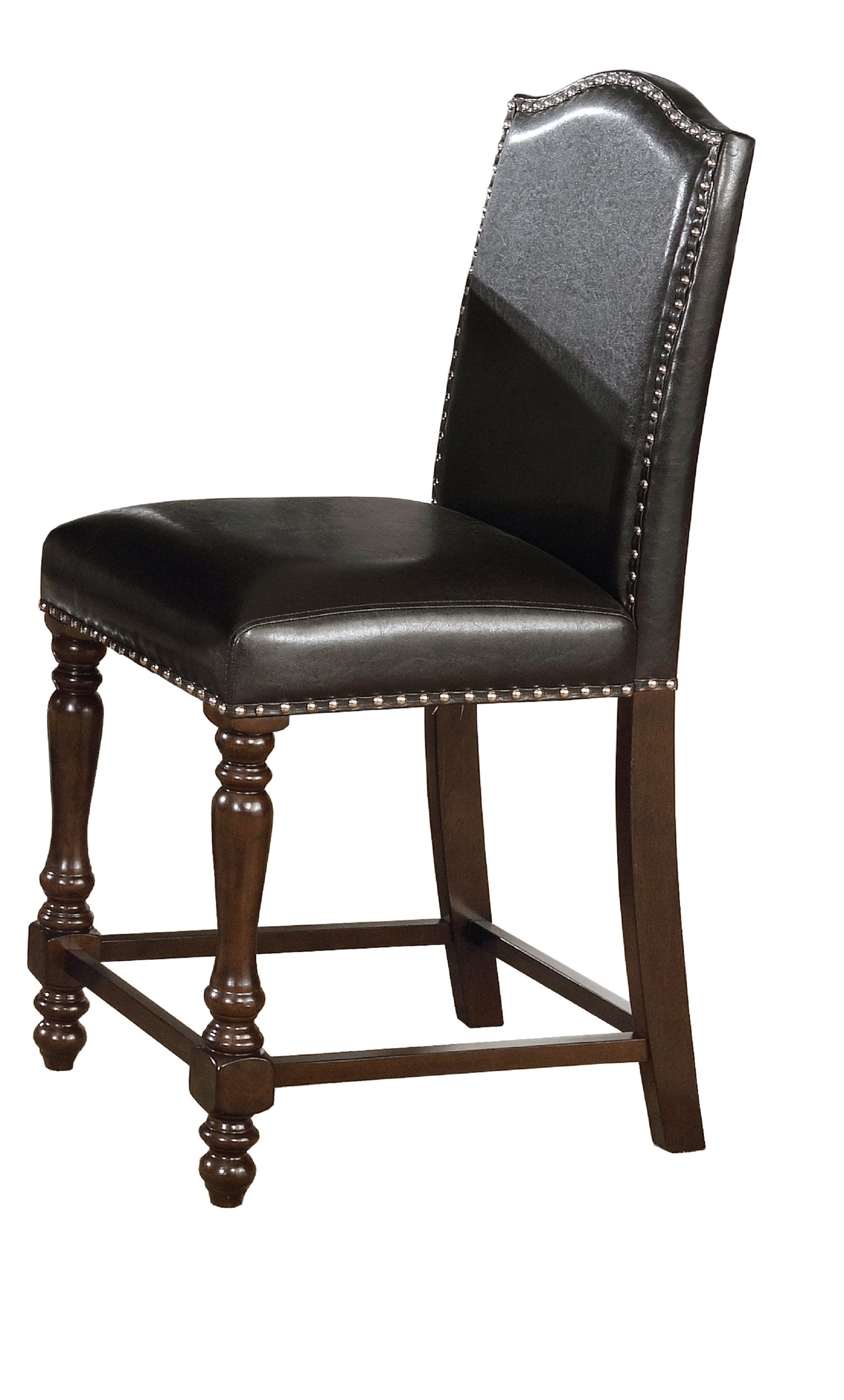 Description :- This traditional counter height stool makes a great addition to a kitchen or casual dining area. Refined details such as turned front legs and trim add classic character to the stool. The seat and backrest are plushly upholstered in either a black Pu leather fabric. Pair with the counter table from this collection for a matching informal dining room group.