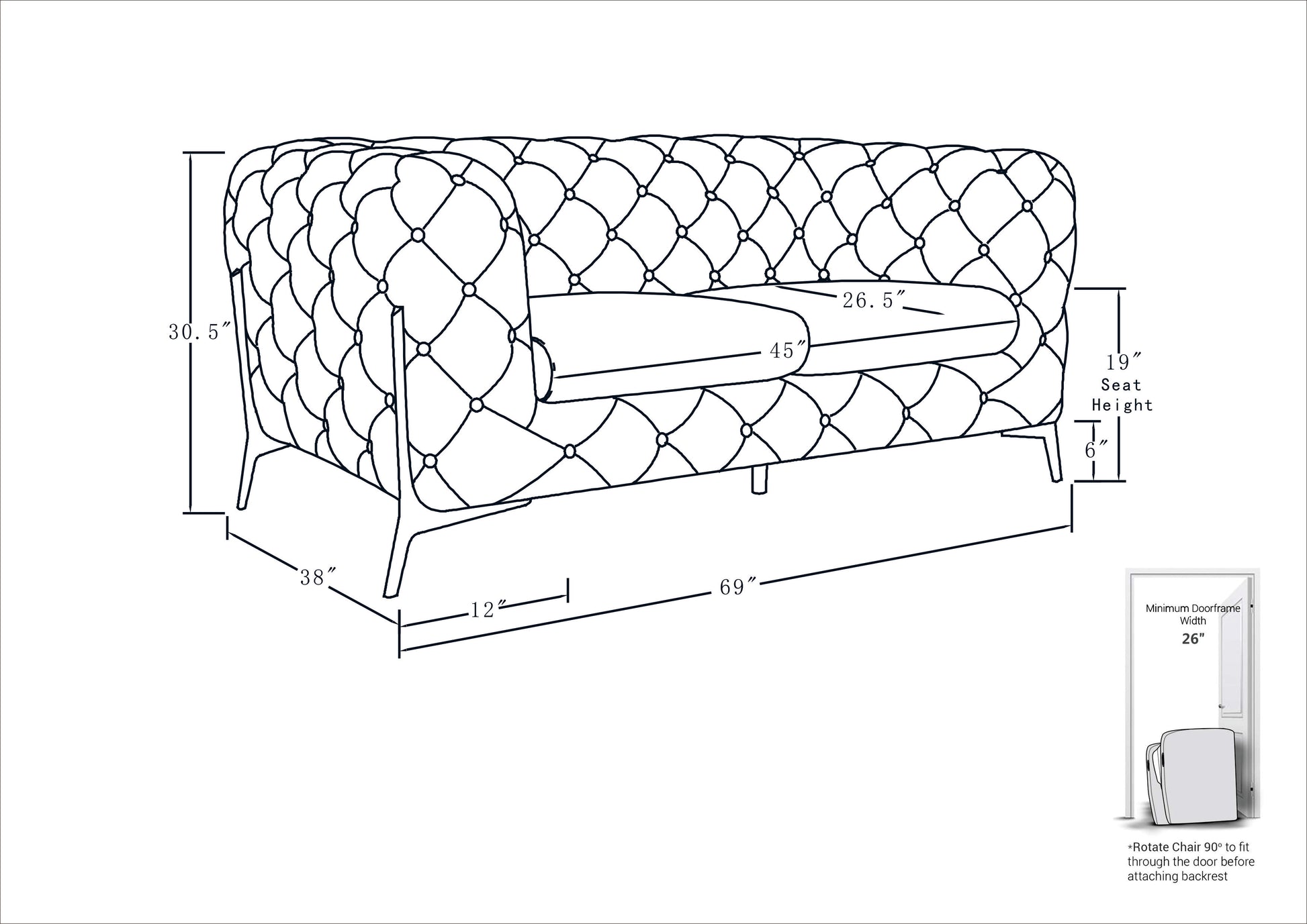 Transitional 100% Top Grain Italian Leather Upholstered Loveseat White Foam Leather