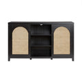 Transitional 58" 2 Door Sideboard With Arched Rattan Panels, Black Black Mdf Mdf