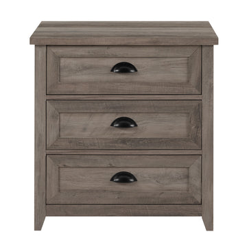 Transitional Farmhouse Framed 3 Drawer Nightstand With Cup Handles Grey Wash Gray Wash Mdf