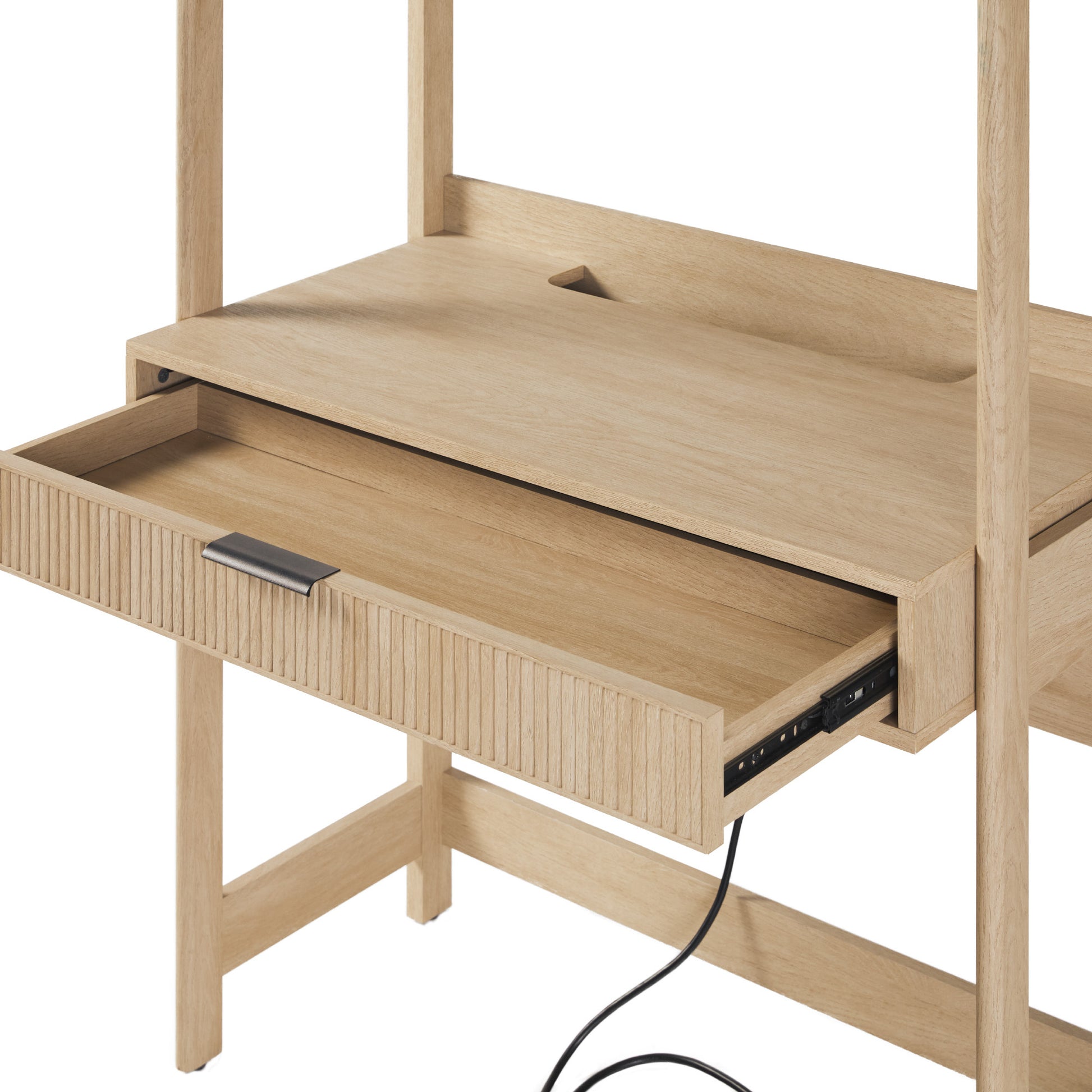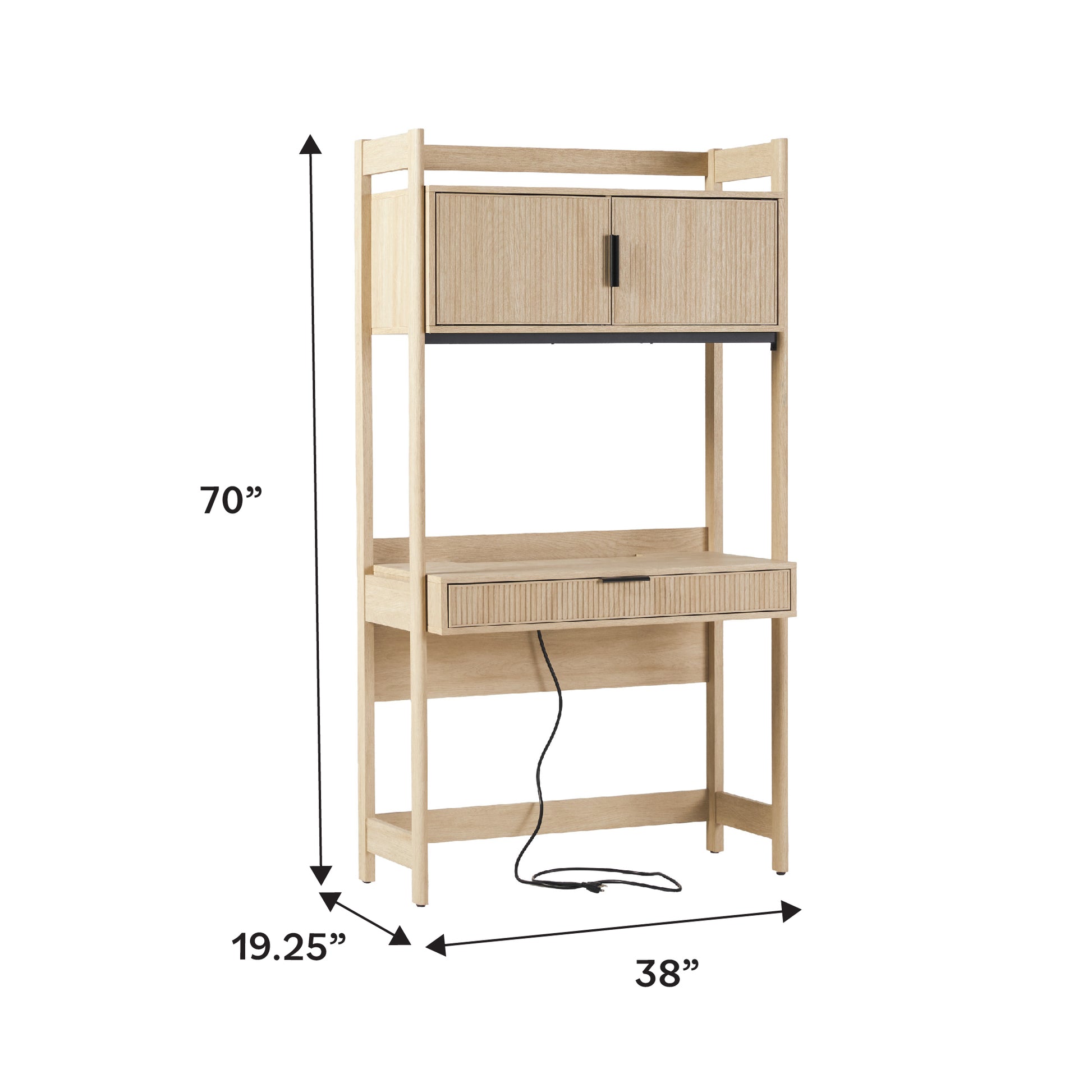Transitional Reeded Desk With Hutch And Drawers Plus Tech Management Oak Oak Mdf Mdf