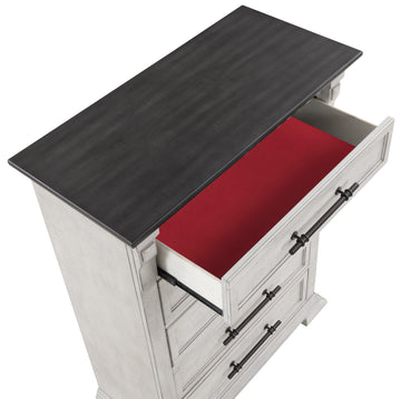 Transitional Style 5 Drawer Chest Made With Wood In Antique White Antique White White Bedroom Transitional Solid Wood Mdf Wood