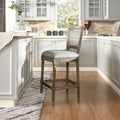 Triomphe Rattan Wicker High Back Armless Counter Bar Stool, Heathered Grey Linen Gray Foam Wood Fabric Rattan