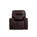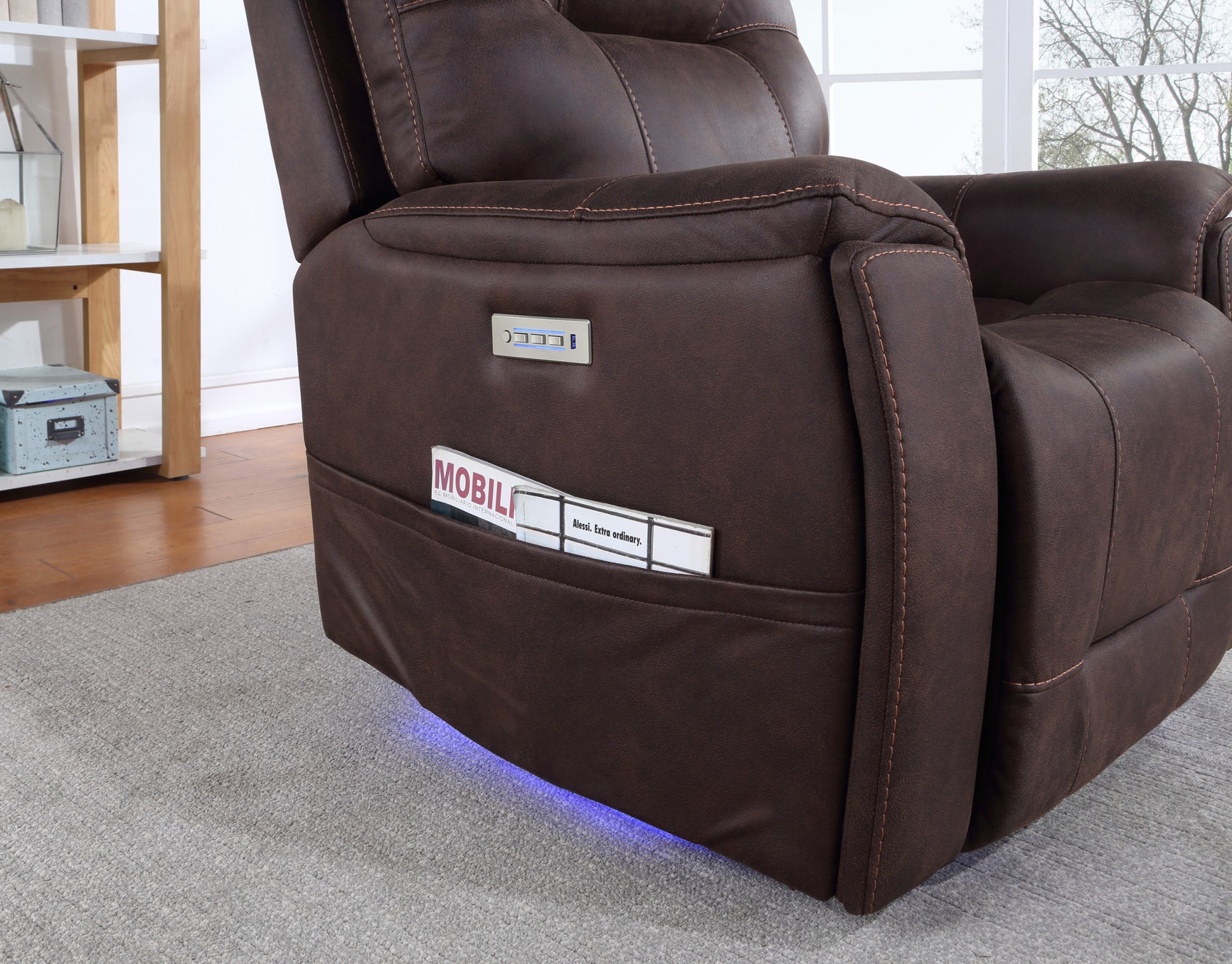 Triple Power Recliner Power Headrest, Power Footrest, Power Lumbar Lighted Cupholders Transitional Design, Brown Brown Foam Fabric