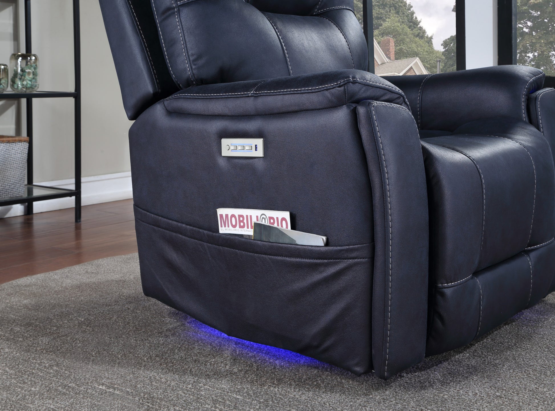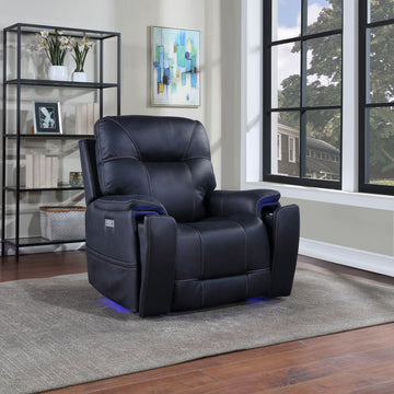 Triple Power Recliner With Lighted Cupholders Ocean Bluetransitional Design Dark Blue Foam Fabric