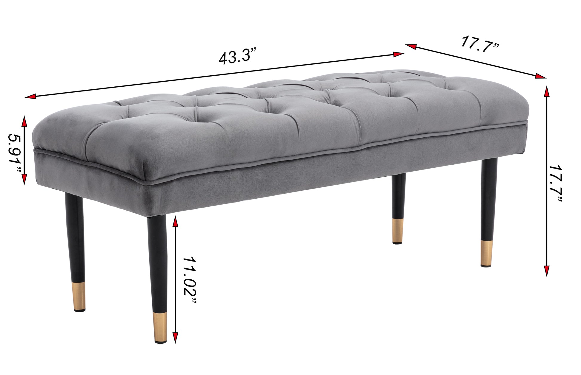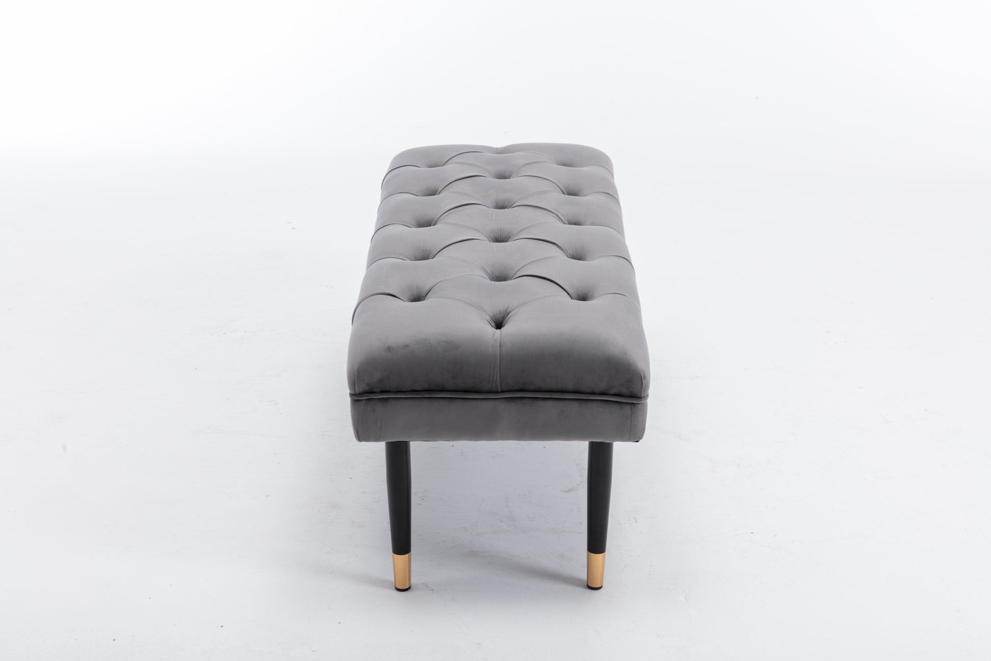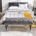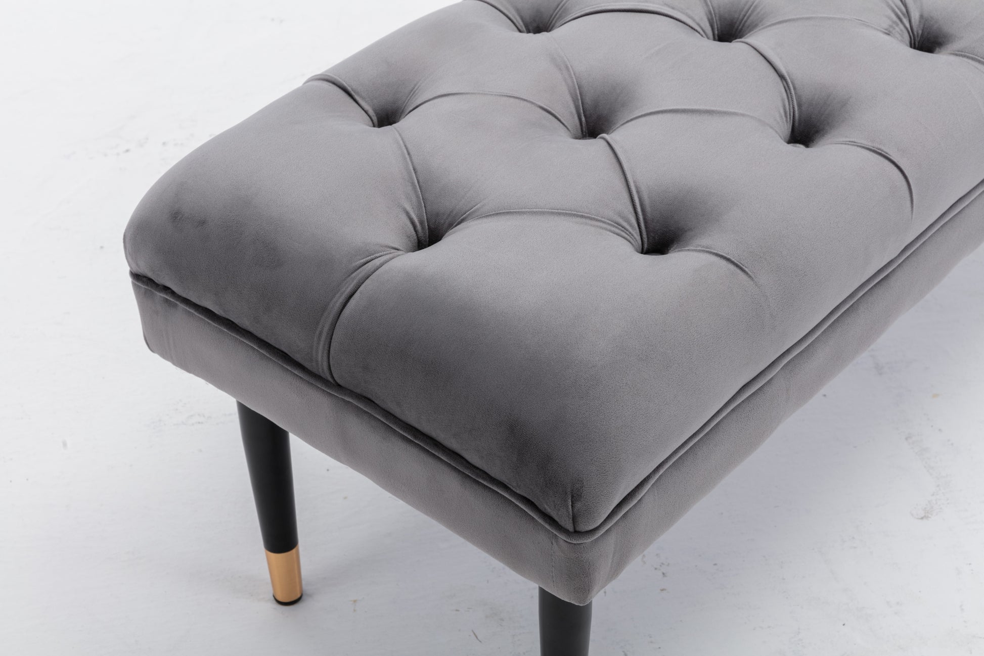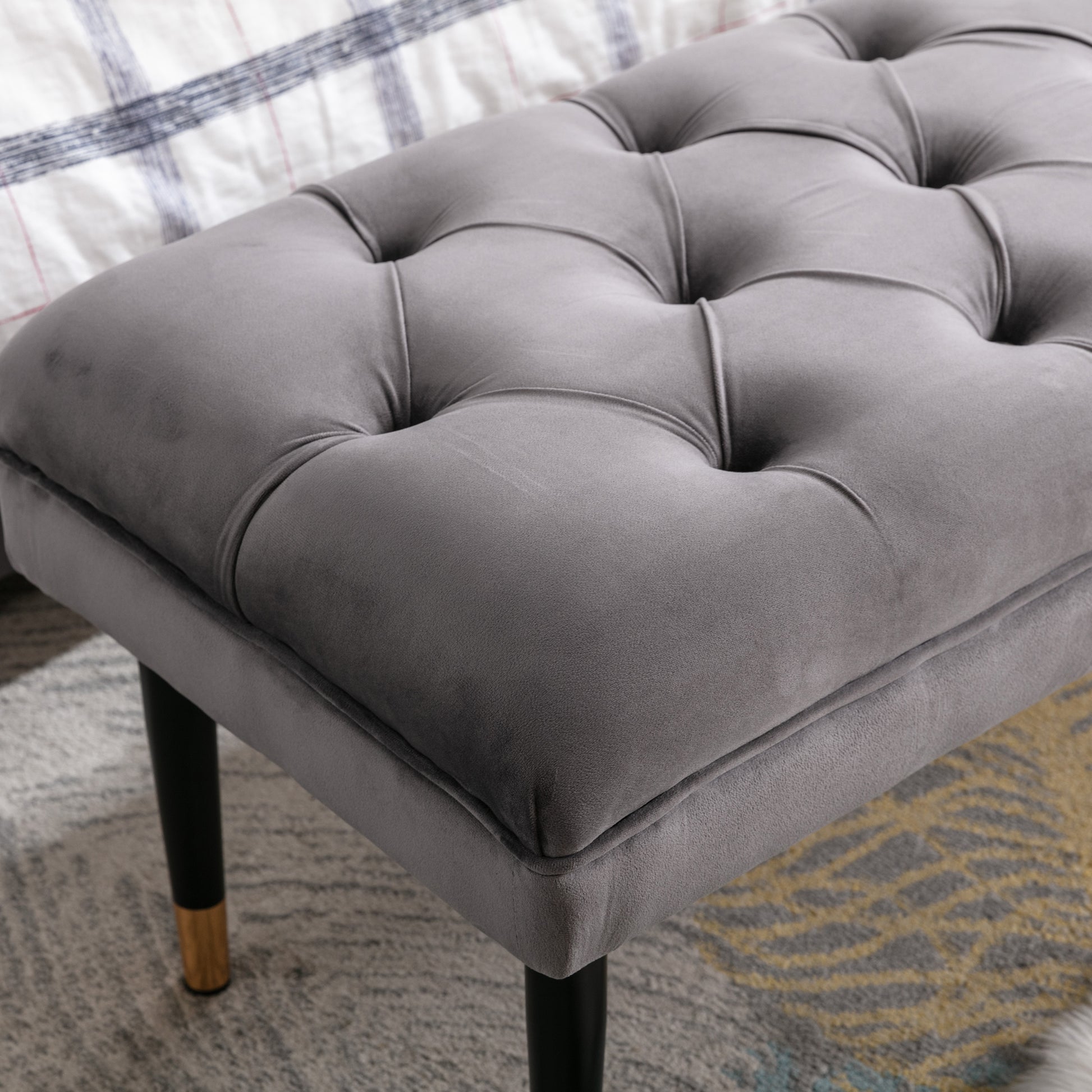 Tufted Bench Modern Velvet Button Upholstered Ottoman Enches Bedroom Rectangle Fabric Footstool With Metal Legs For Living Room Entryway,Grey Gray Foam Fabric