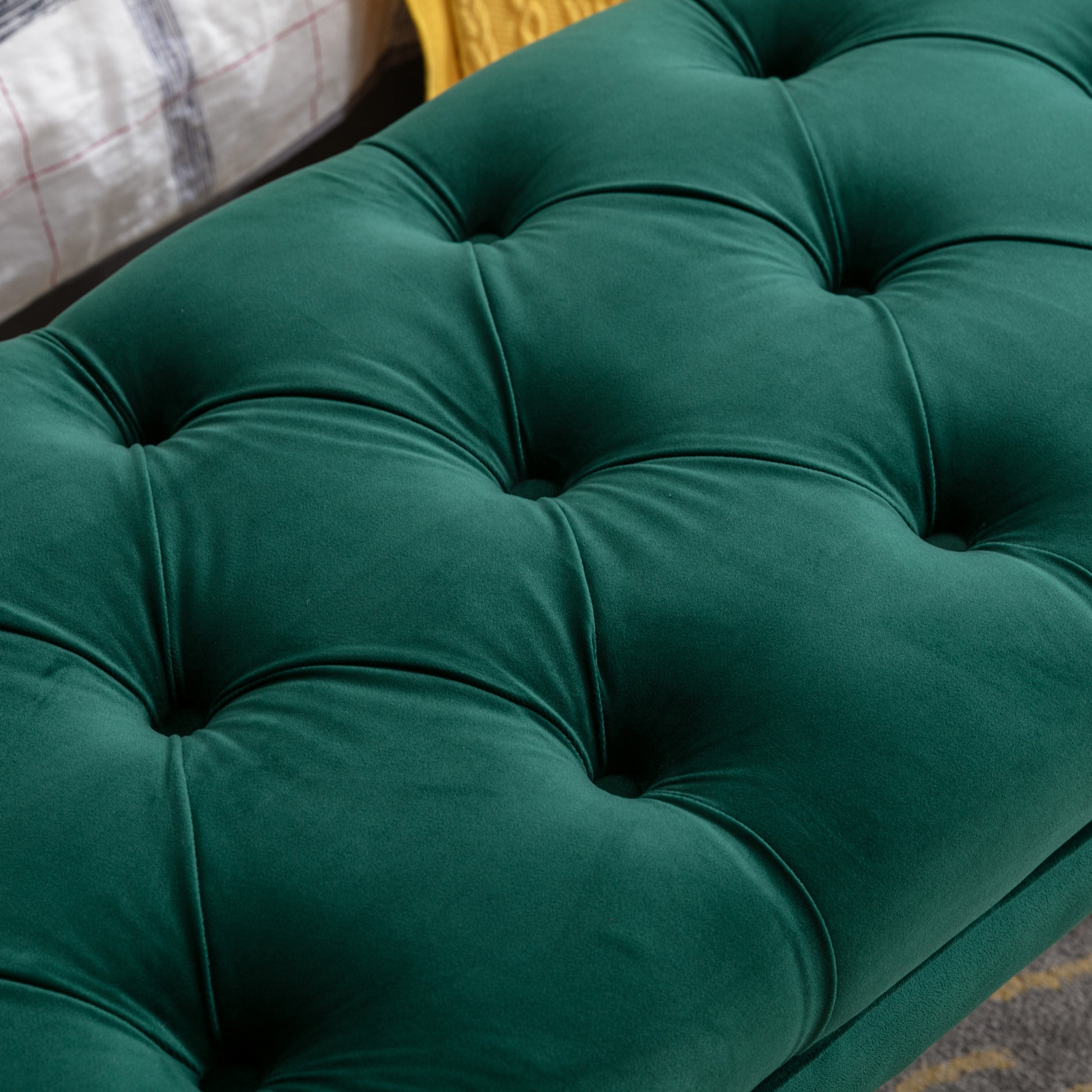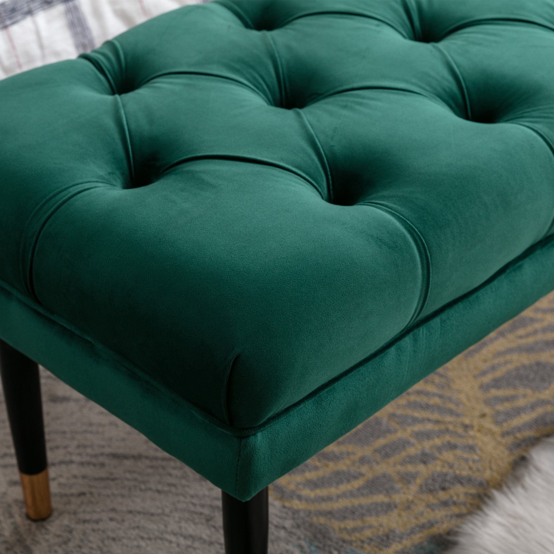 Tufted Bench Modern Velvet Button Upholstered Ottoman Enches Bedroom Rectangle Fabric Footstool With Metal Legs For Living Room Entryway,Green Green Foam Fabric