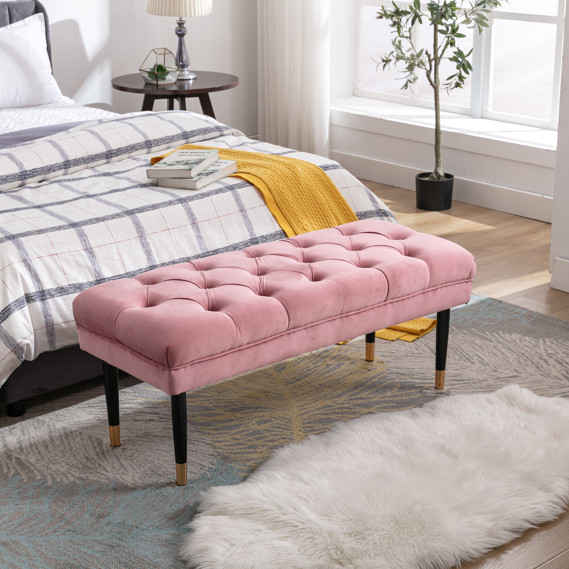 Tufted Bench Modern Velvet Button Upholstered Ottoman Enches Bedroom Rectangle Fabric Footstool With Metal Legs For Living Room Entryway,Pink Pink Foam Fabric