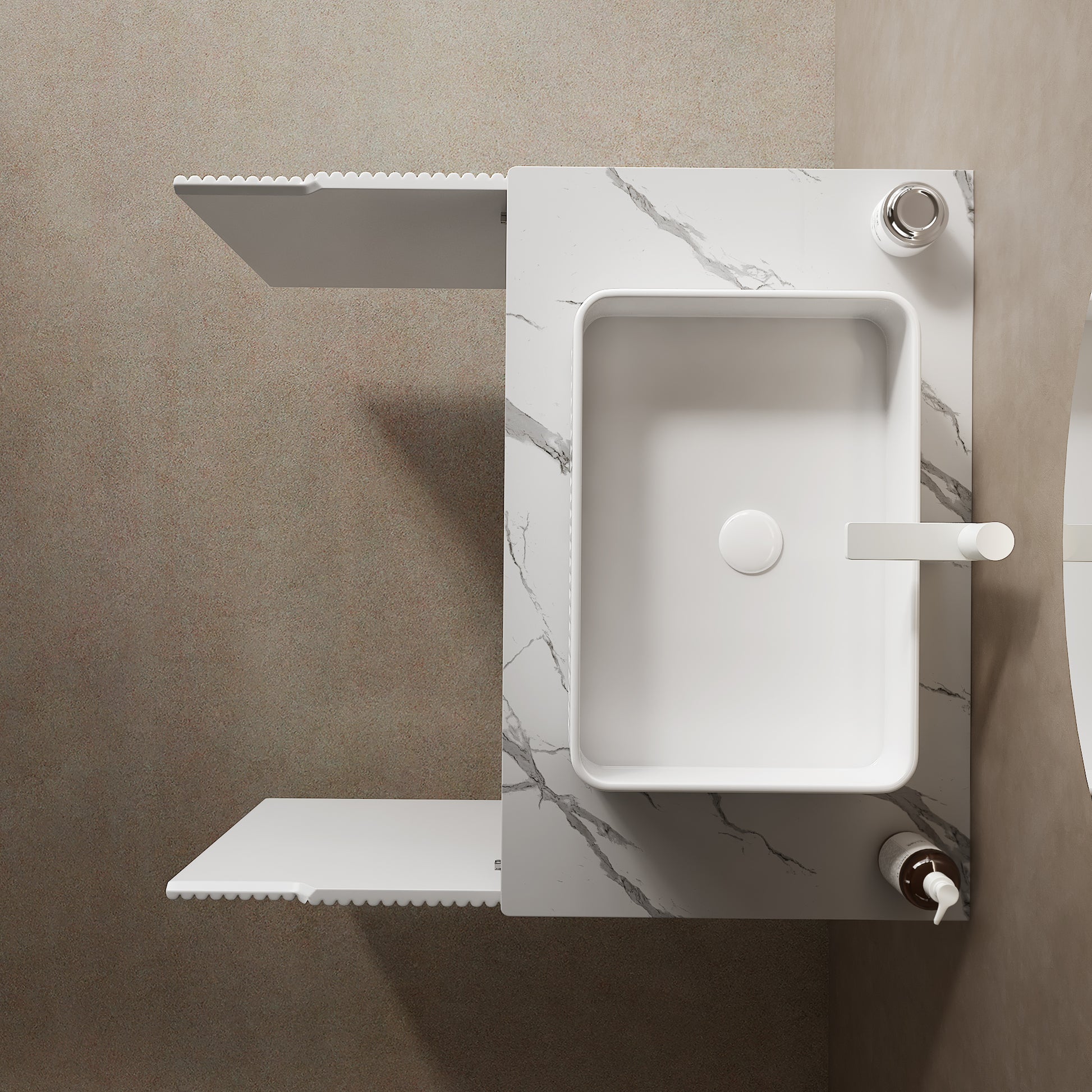 Turio 30" Bathroom Vanity With Sink, Freestanding Plywood Bathroom Storage Cabinet With 2 Doors, White Ceramic Basin And Carrara White Sintered Stone Counter Top, With Sink Hole Cover And Drain, White White Bathroom Modern,Scandinavian Plywood Ceramic