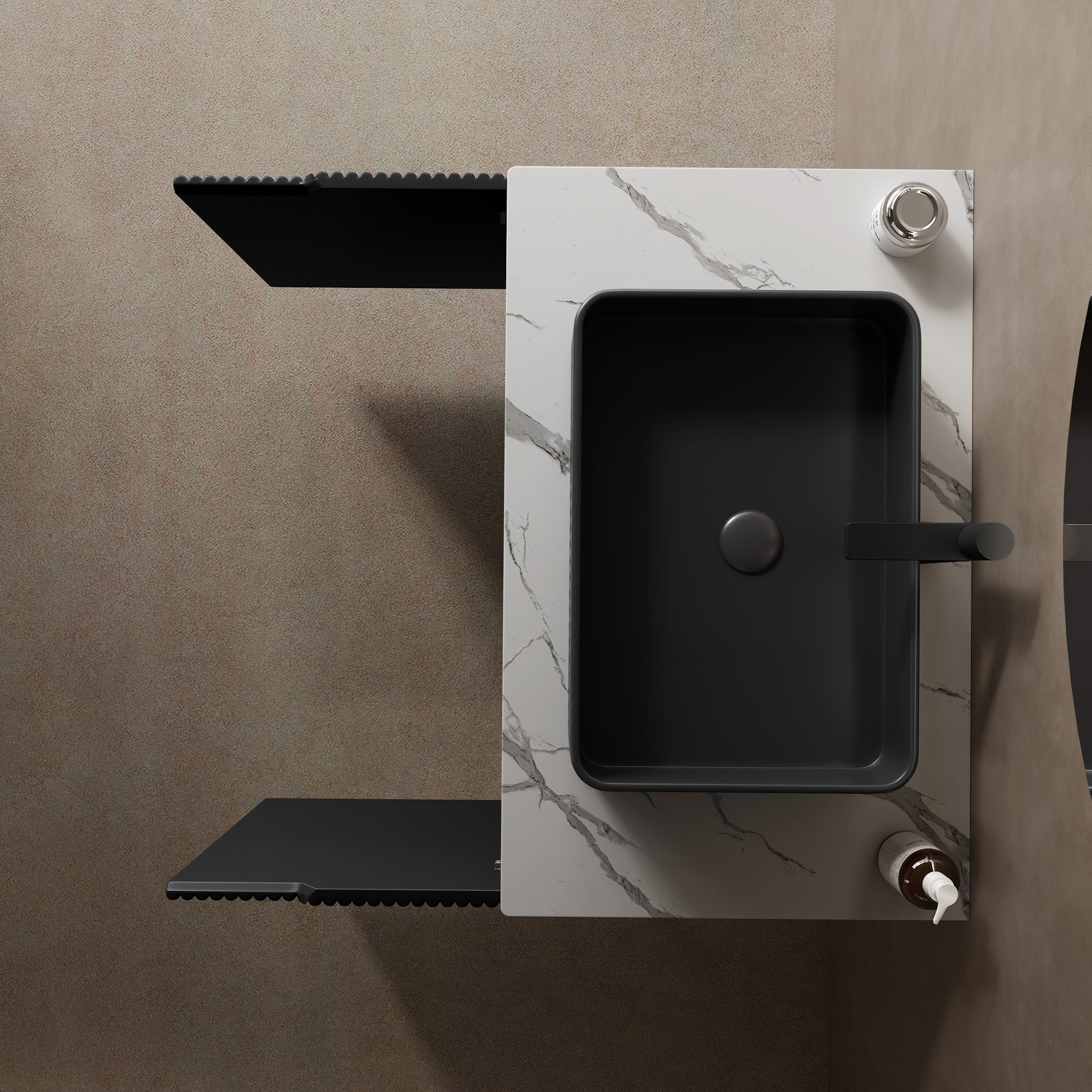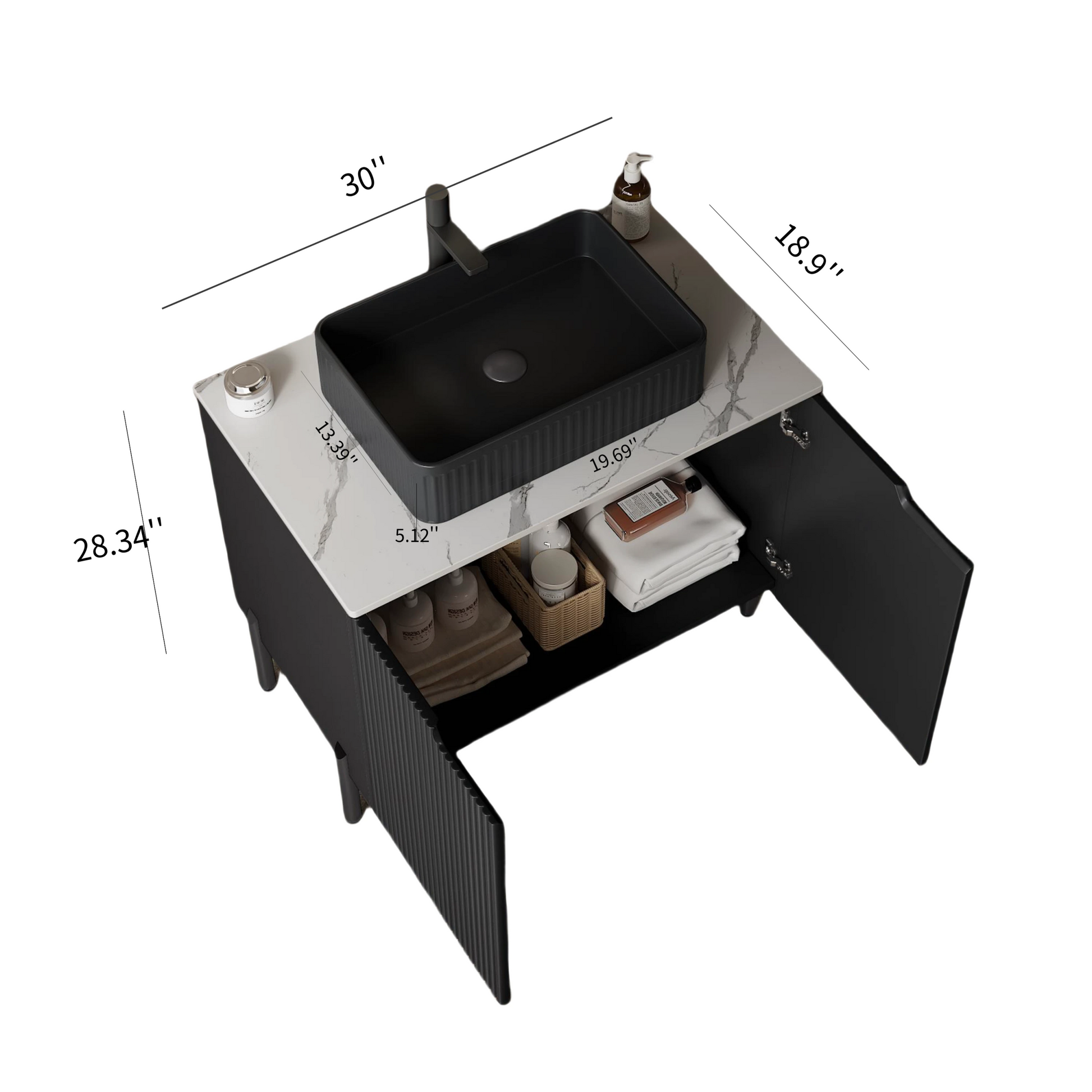 Turio 30" Bathroom Vanity With Sink, Freestanding Plywood Bathroom Storage Cabinet With 2 Doors, Black Ceramic Basin And Carrara White Sintered Stone Counter Top, With Sink Hole Cover And Drain, Black Black White Bathroom Modern,Scandinavian Plywood