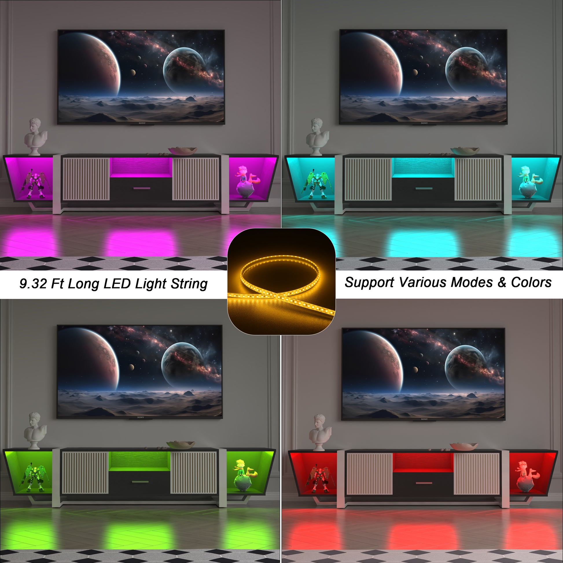 Tv Console With Large Storage Cabinets, Biplane Shape Design Led Tv Stand With Remote Control, Multiple Modes Changing Lights Modern Entertainment Center With Power Cord, Black Black Primary Living Space 70 Inches 60 69 Inches Modern 70 Inches Particle
