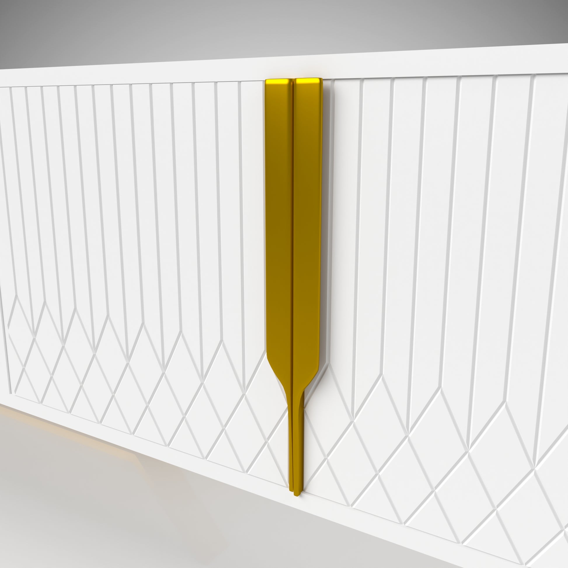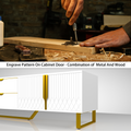 Tv Console With Storage Cabinets, Carve Design Tv Stand With Metal Legs, Large Storage Space Modern Entertainment Center Suit For Living Room, Bedroom, White White Primary Living Space 70 79 Inches 75 Inches Particle Board Particle Board