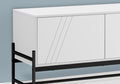 Tv Stand, 60 Inch, Console, Media Entertainment Center, Storage Cabinet, Living Room, Bedroom, White Laminate, Black Metal, Contemporary, Modern White 80 89 Inches Particle Board