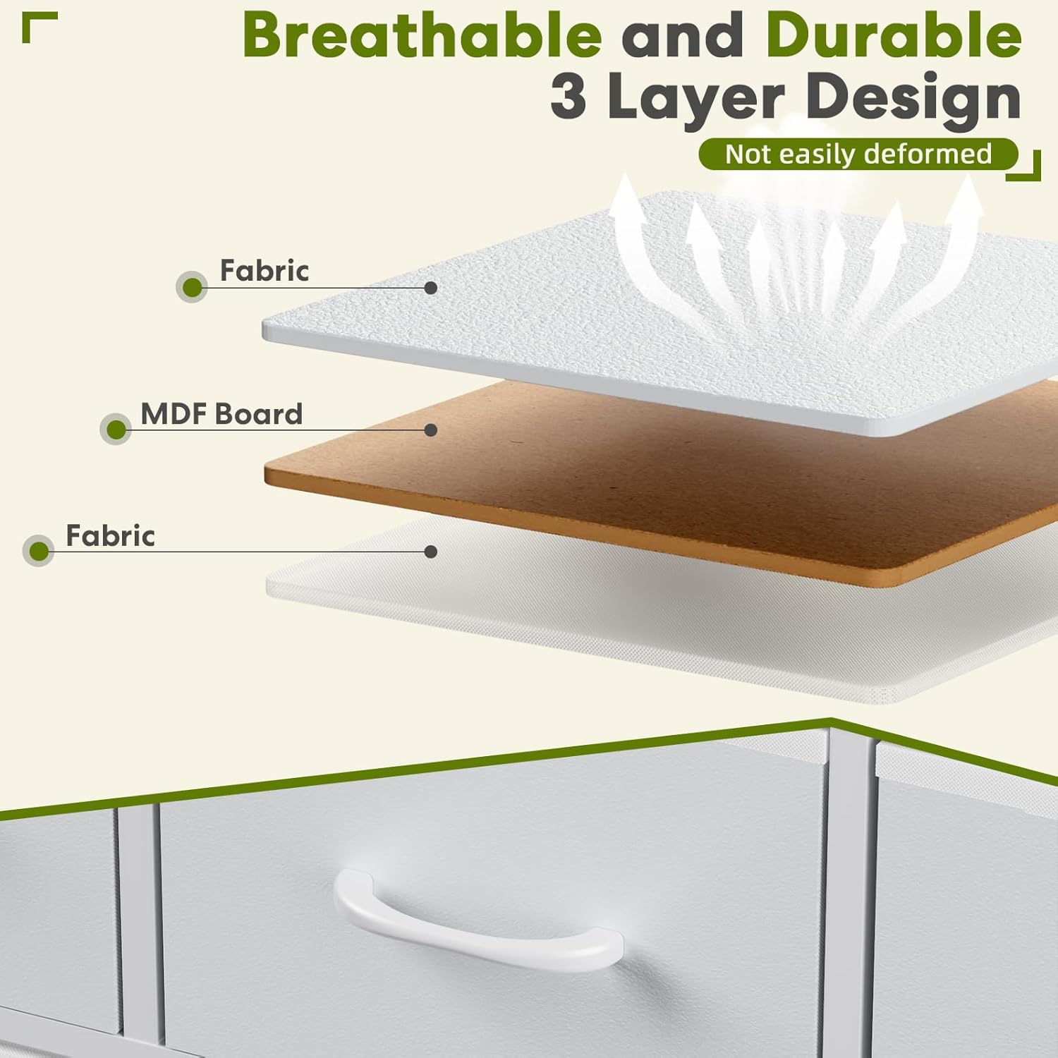 Tv Stand Dresser For Bedroom Entertainment Center With 5 Fabric Drawers, Storage Organizers Units For Living Room, Media Console Table With Open Shelf Up For 45" Tv, White, Wood Top White Wood