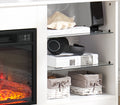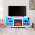 Tv Stand Electric Fireplace Glass Shelves, 3D Fireplace Tv Stand With Led Lights Wood With Usb Charging Outlet Modern Television Table Center For Tv Up To 62" White, 58''W*15.5''D*24.4 White 50 59