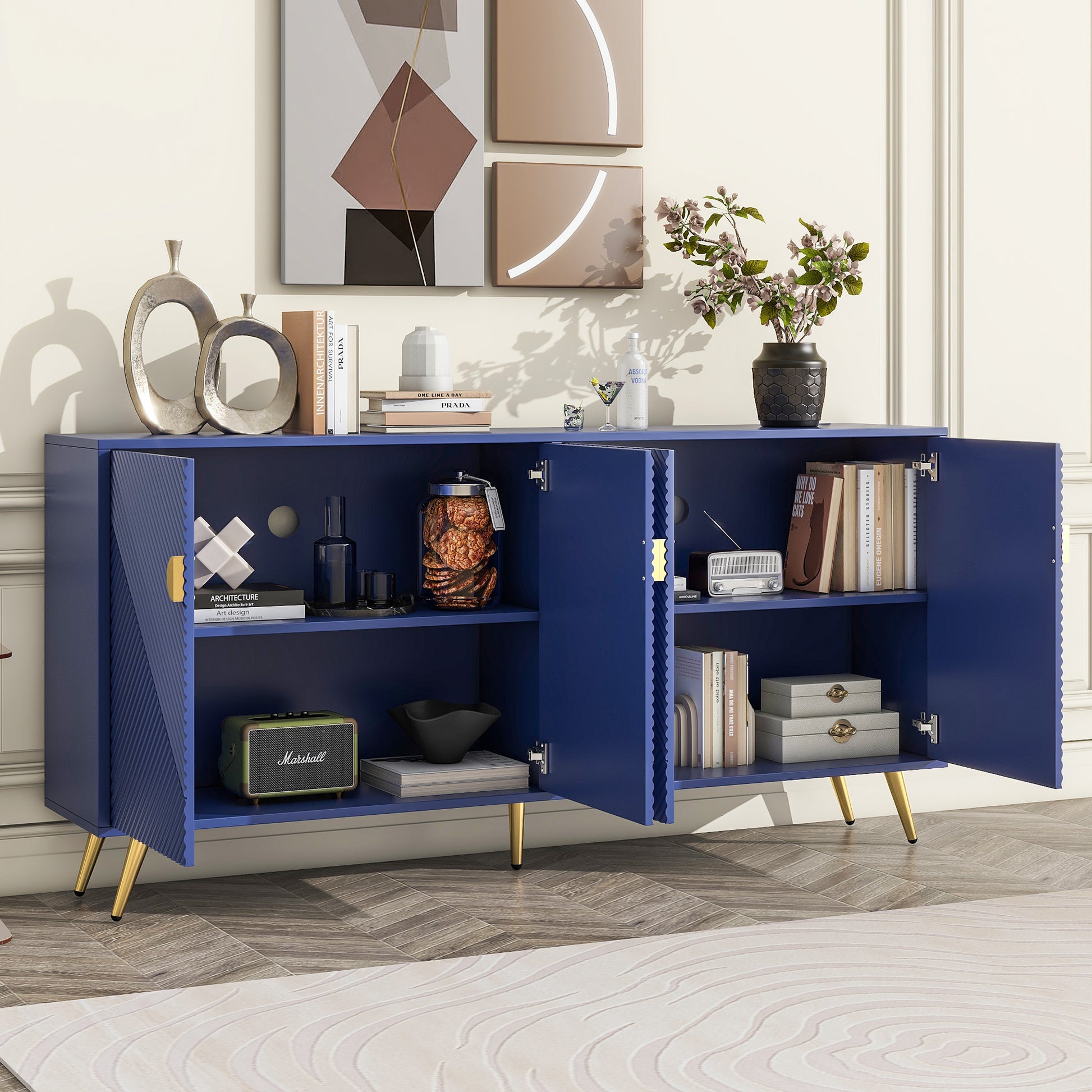 Tv Stand For 60 Inch Tv, Entertainment Center Tv Media Console Table, Modern Tv Stand With Storage, Tv Console Cabinet Furniture For Living Room Navy Blue Mdf