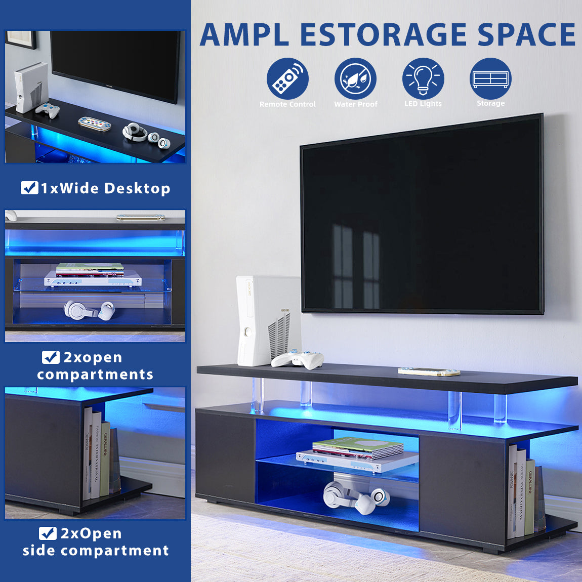 Tv Stand For 65 Inch Tv Led Gaming Entertainment Center Media Storage Console Table With Large Side Cabinet For Living Room Black Black Dining Room 60 69 Inches American Design,Modern Engineered Wood