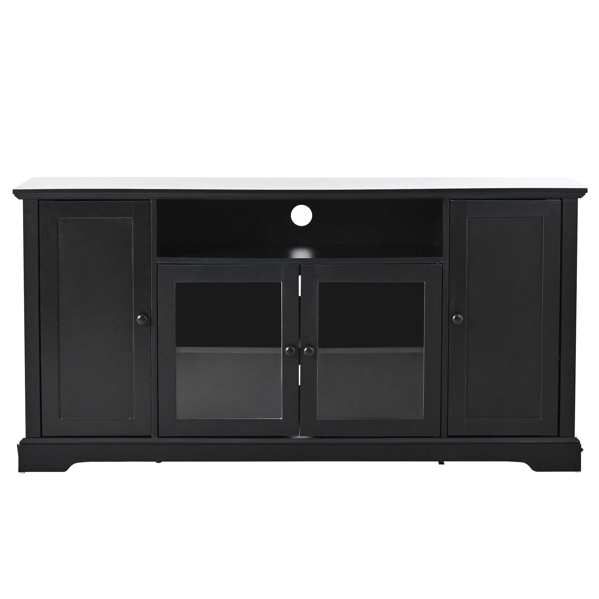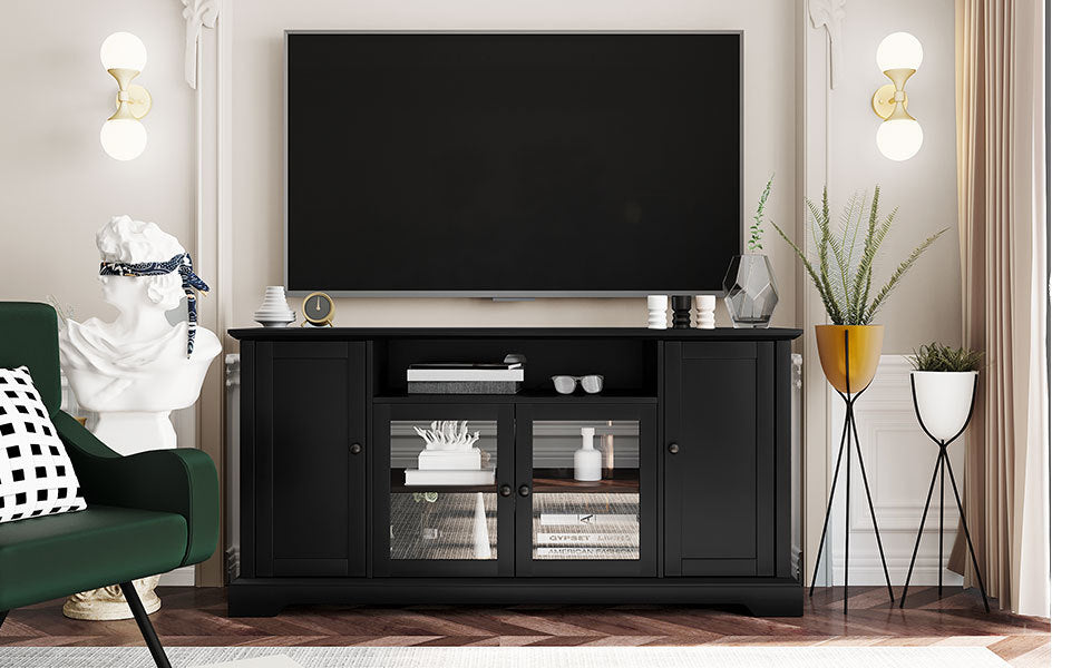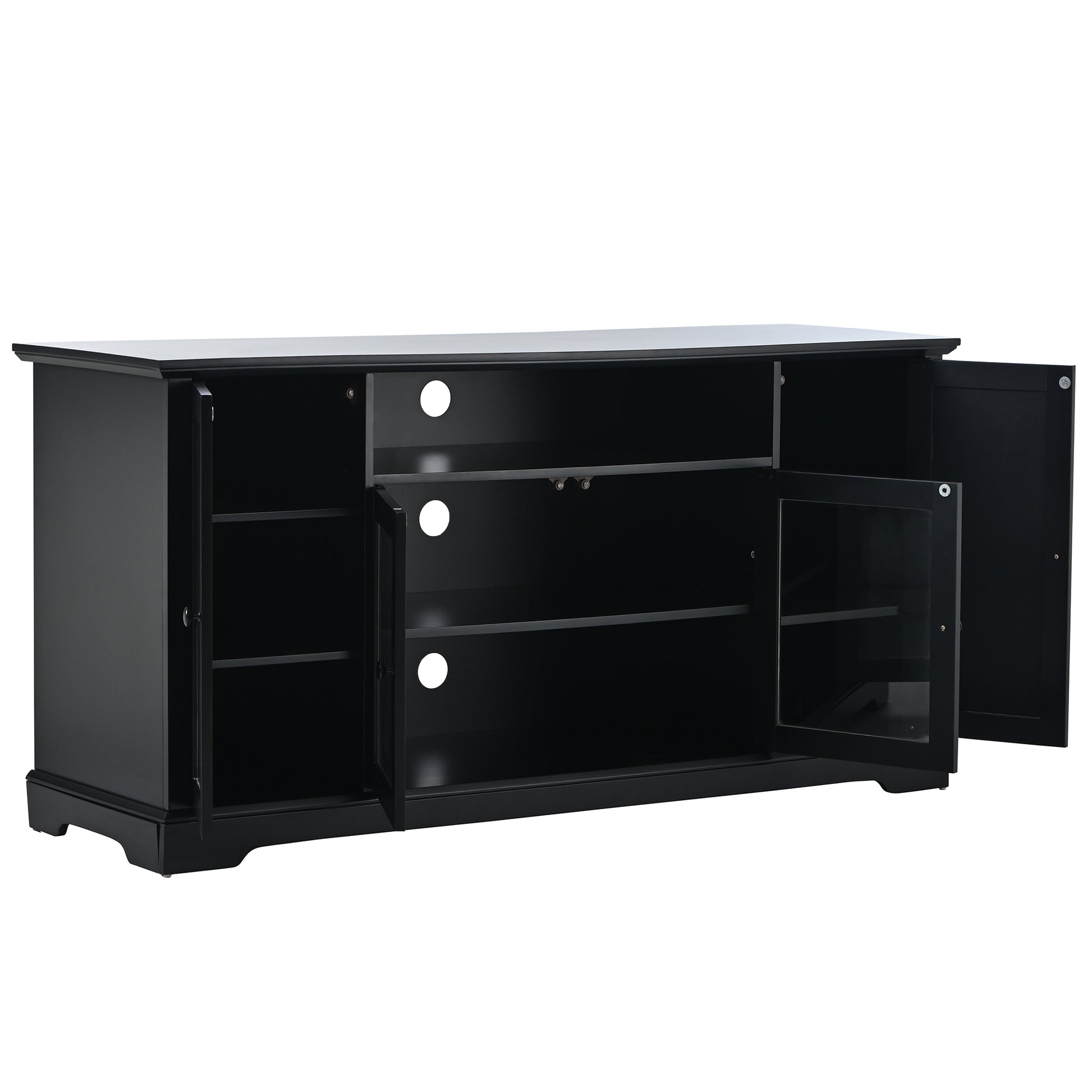 Tv Stand For Tv Up To 65In With 2 Tempered Glass Doors Adjustable Panels Open Style Cabinet, Sideboard For Living Room, Black Black Mdf