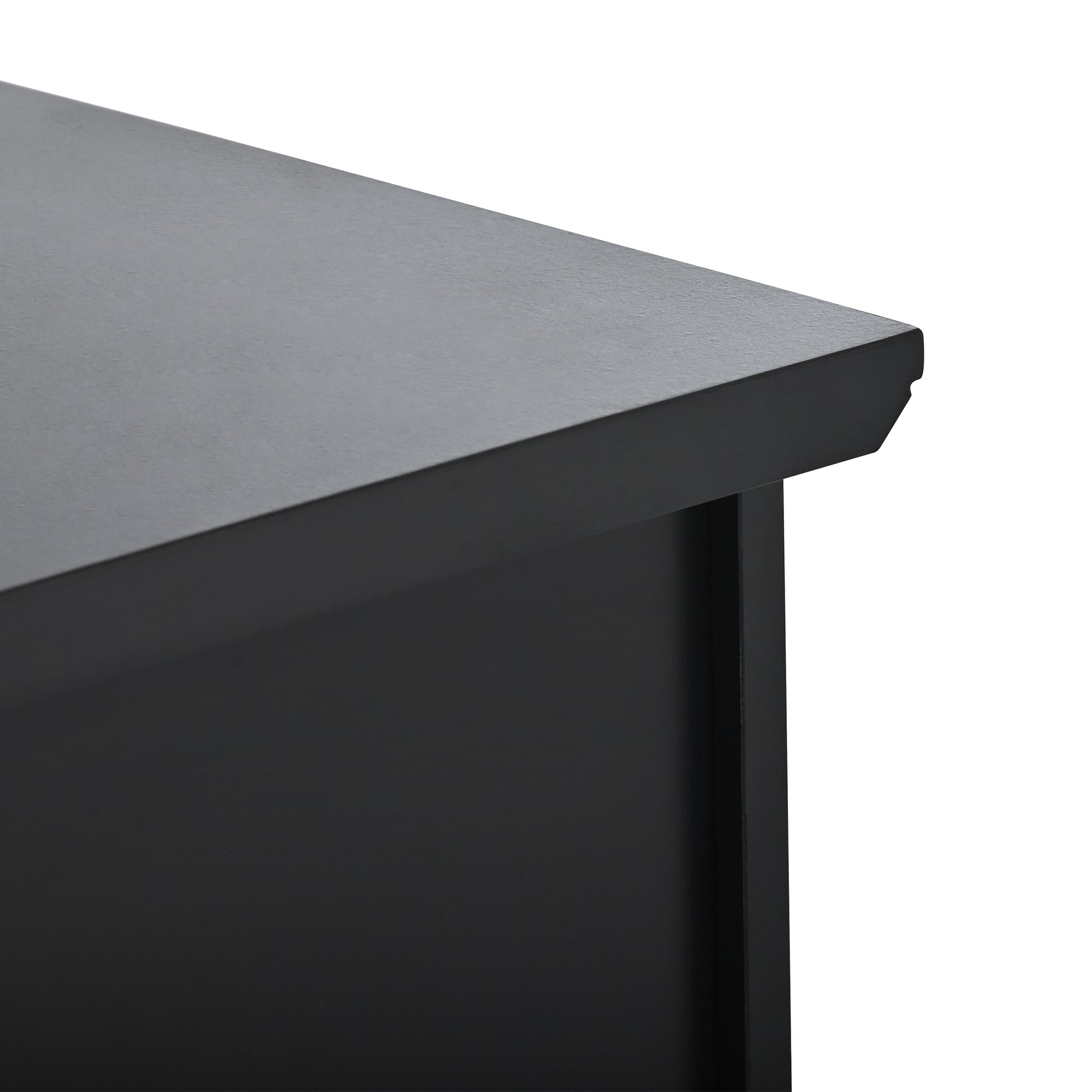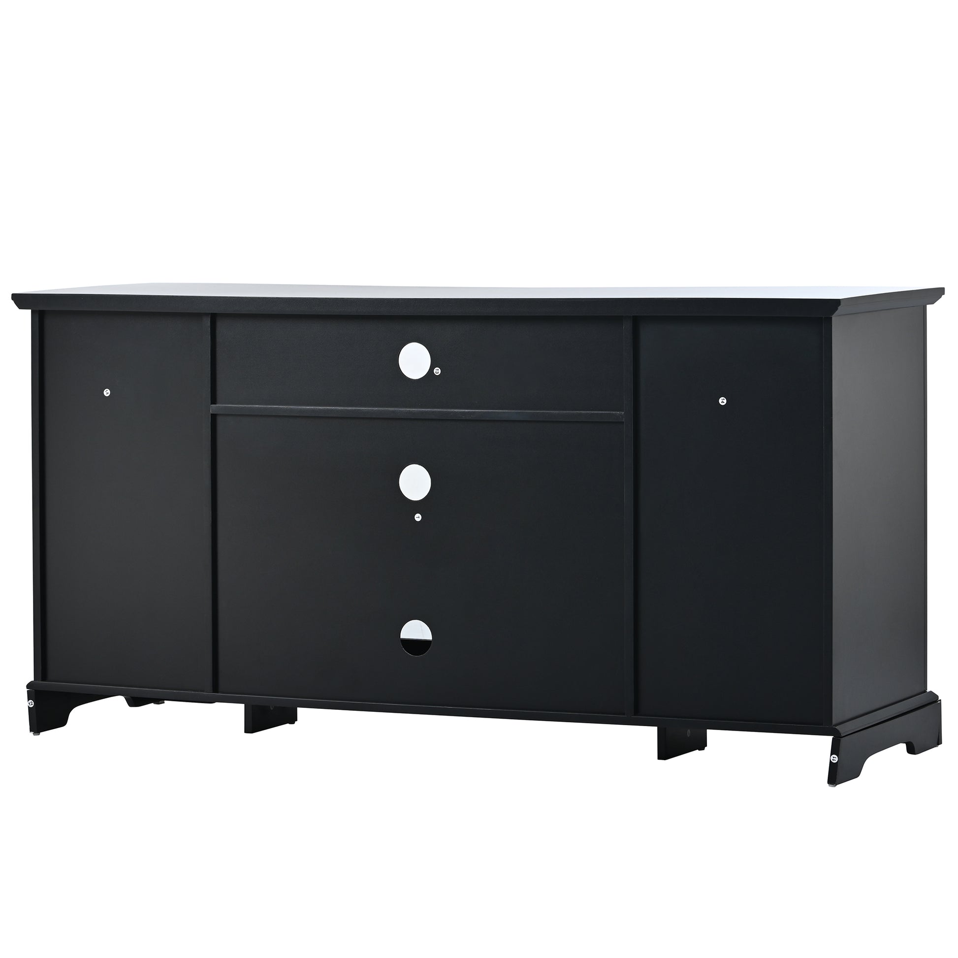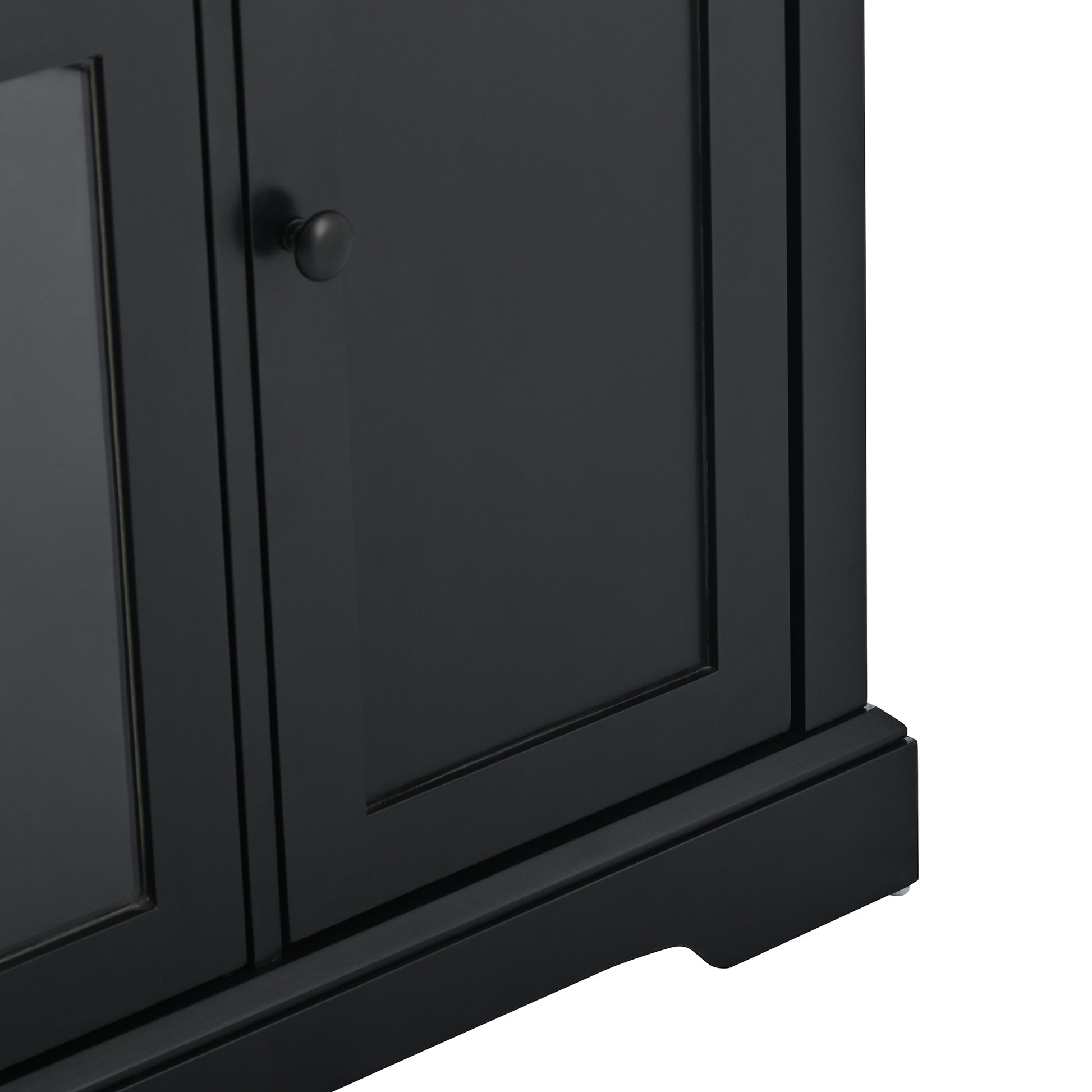 Tv Stand For Tv Up To 65In With 2 Tempered Glass Doors Adjustable Panels Open Style Cabinet, Sideboard For Living Room, Black Black Mdf