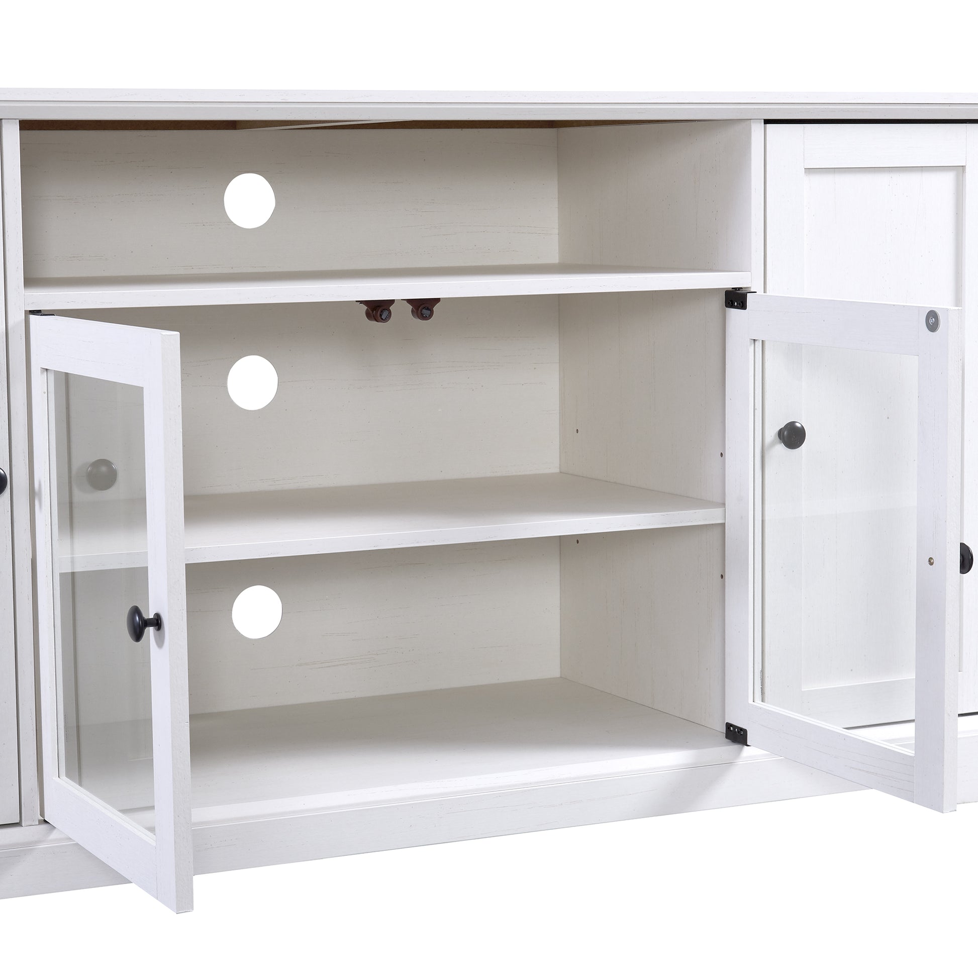 Tv Stand For Tv Up To 65In With 2 Tempered Glass Doors Adjustable Panels Open Style Cabinet, Sideboard For Living Room, White White Mdf