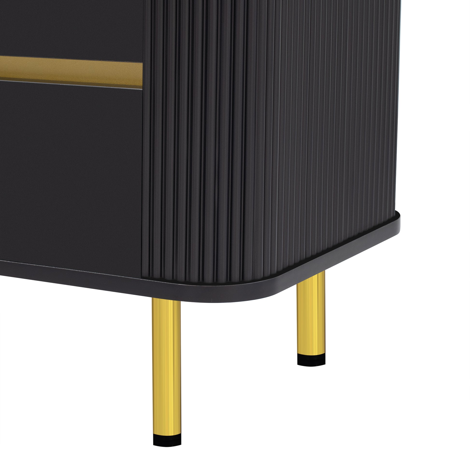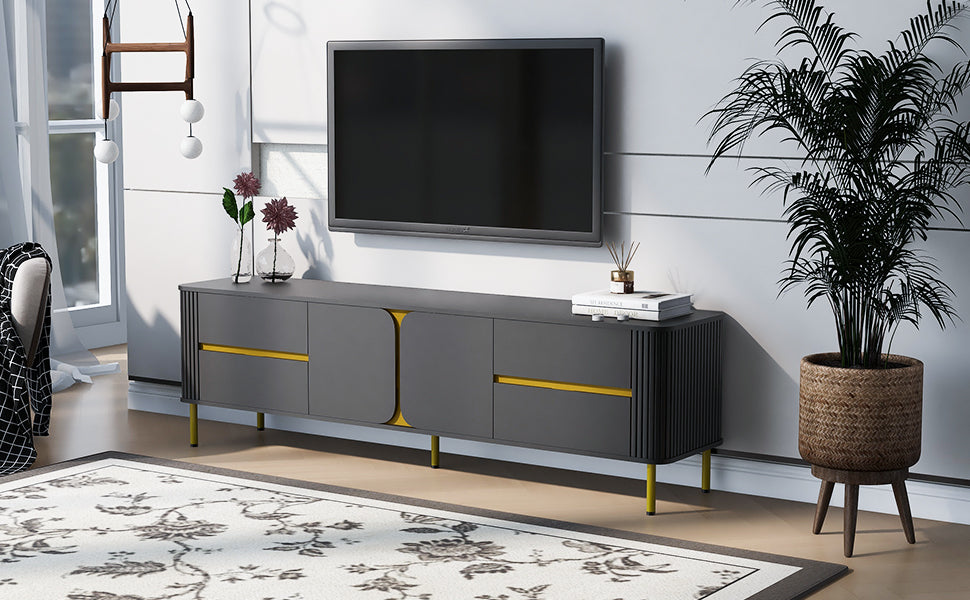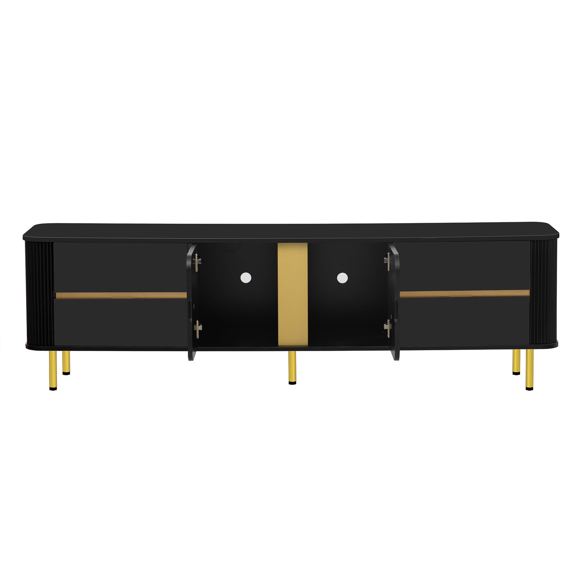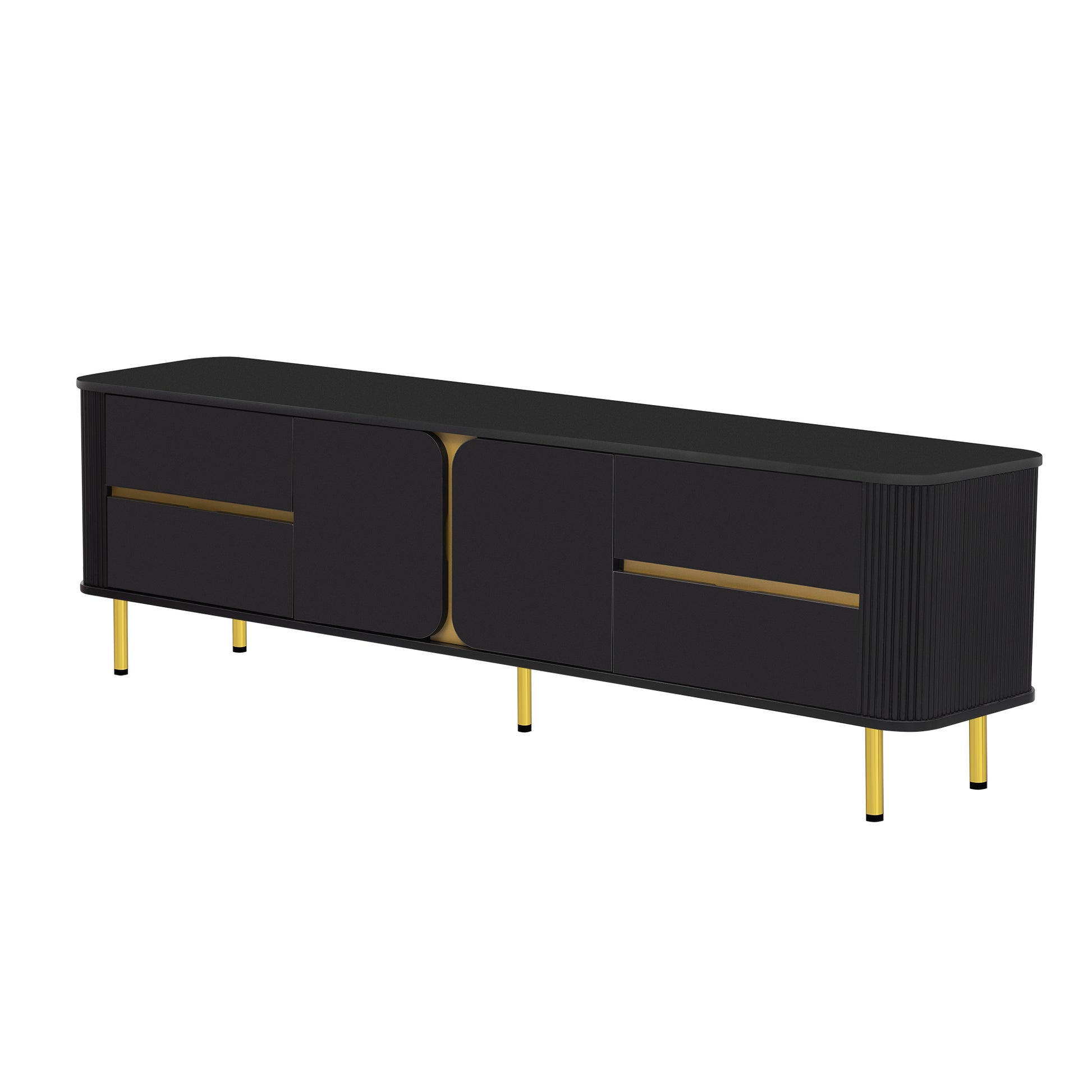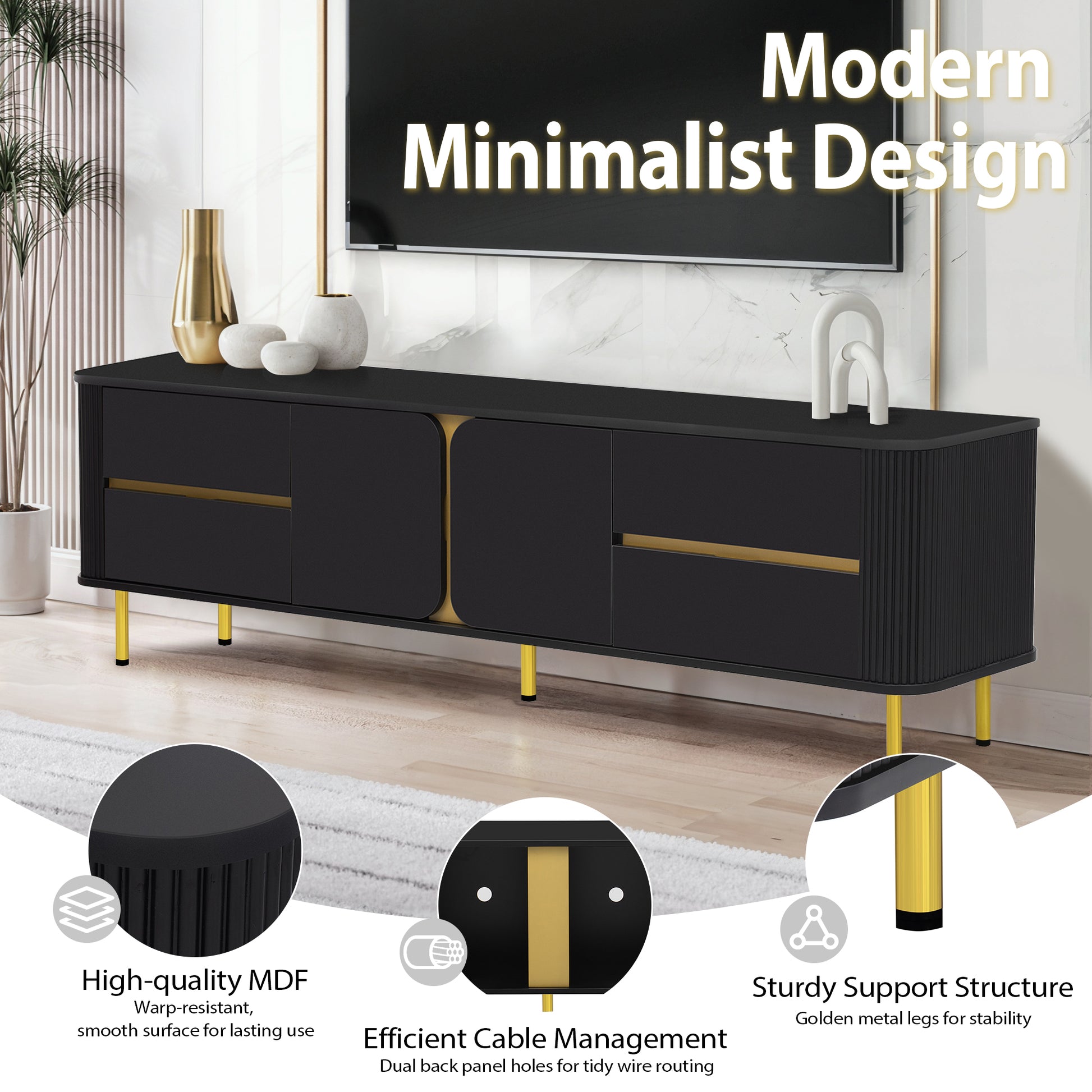 Tv Stand For Tvs Up To 80 Inches, Modern Entertainment Center Media Console With 4 Drawers And 1 Spacious Cabinet For Living Room, Black Black 70 79 Inches Mdf