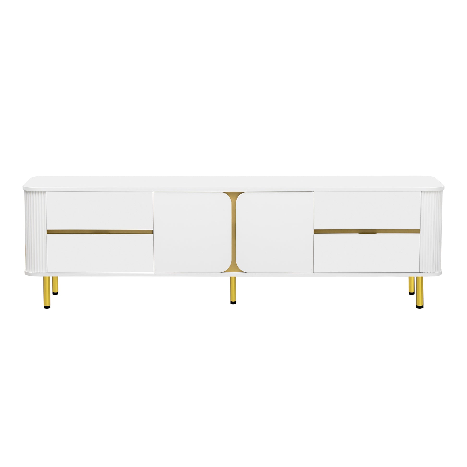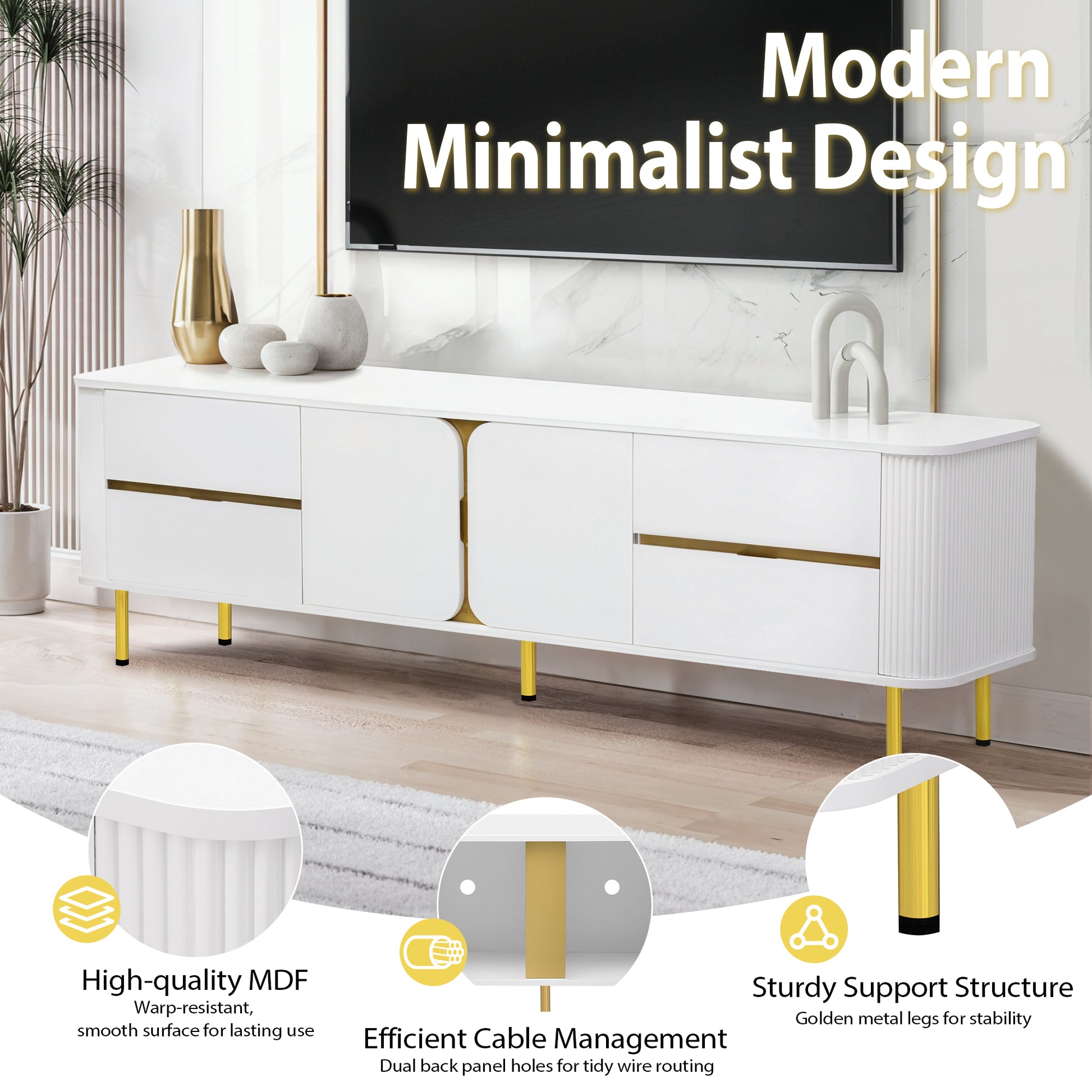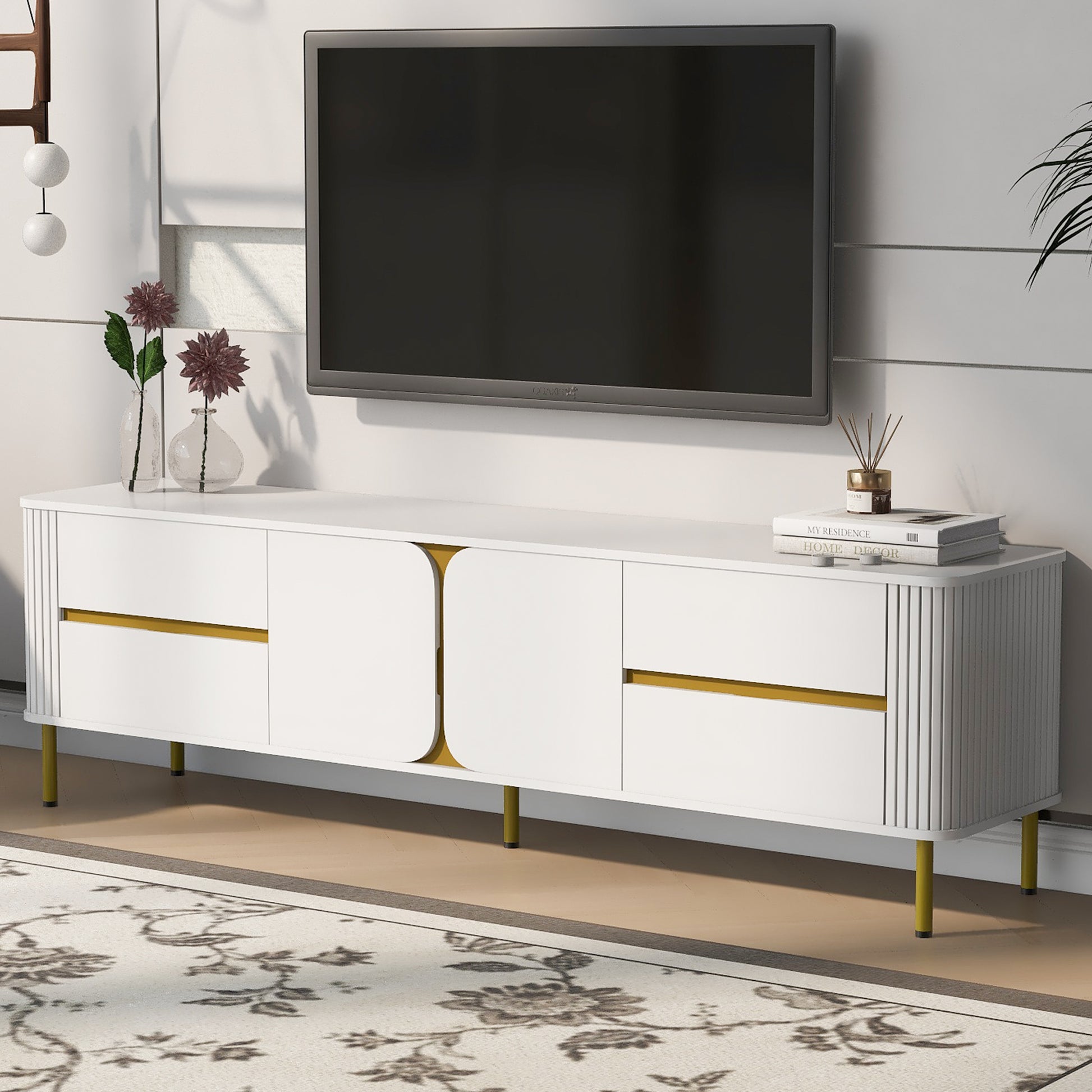 Tv Stand For Tvs Up To 80 Inches, Modern Entertainment Center Media Console With 4 Drawers And 1 Spacious Cabinet For Living Room, White White 70 79 Inches Mdf