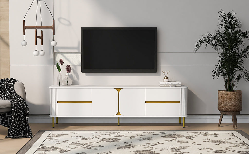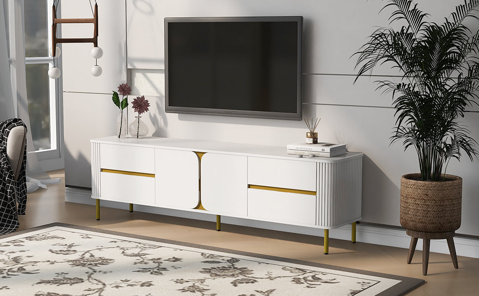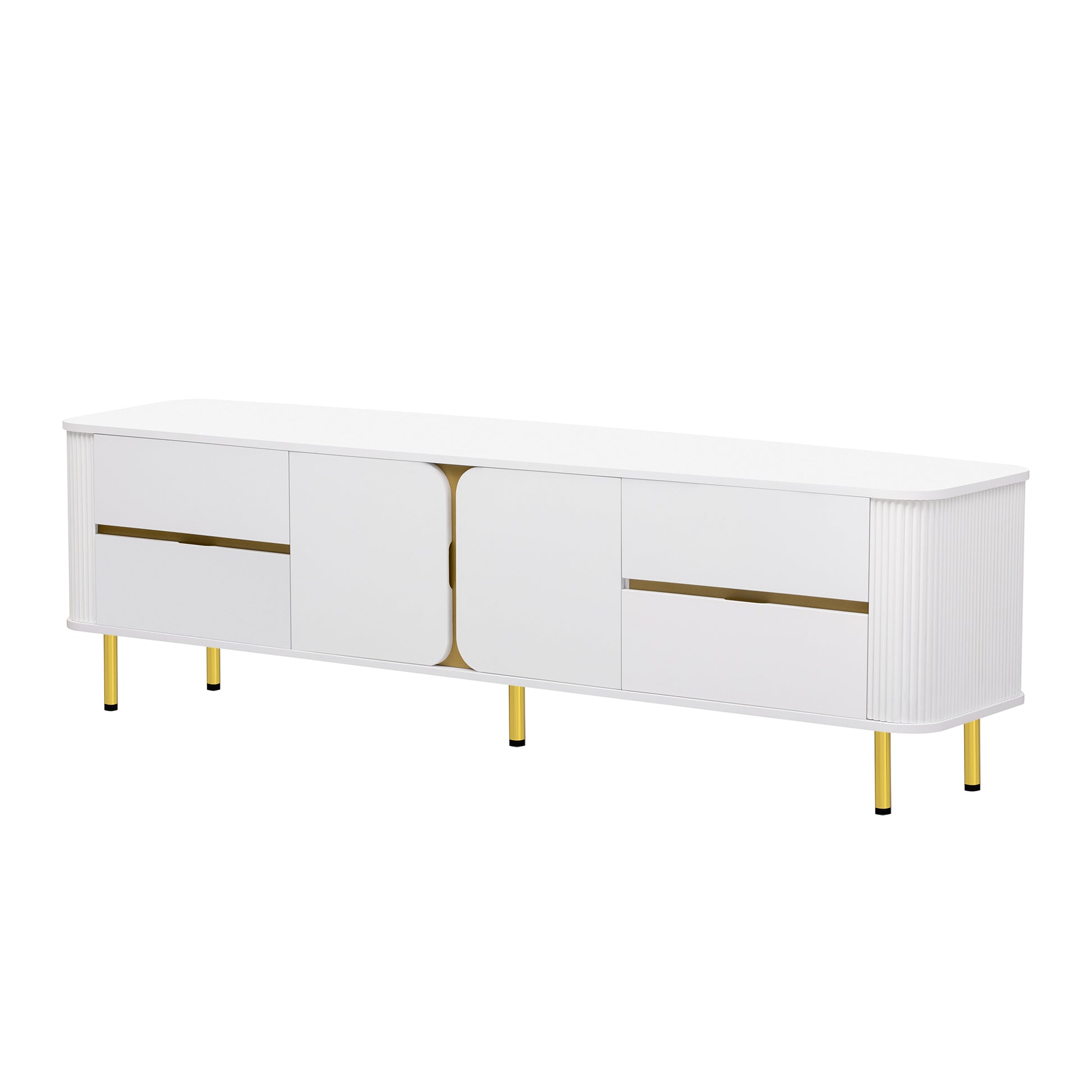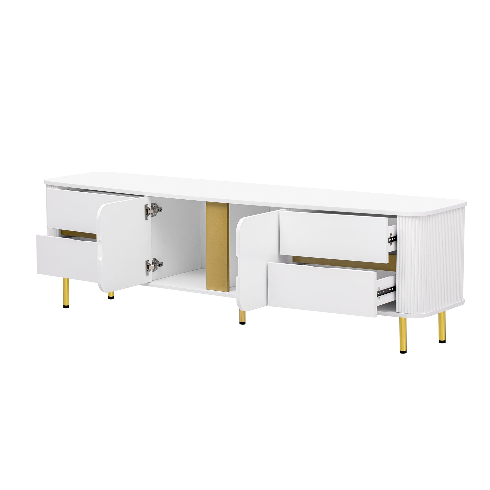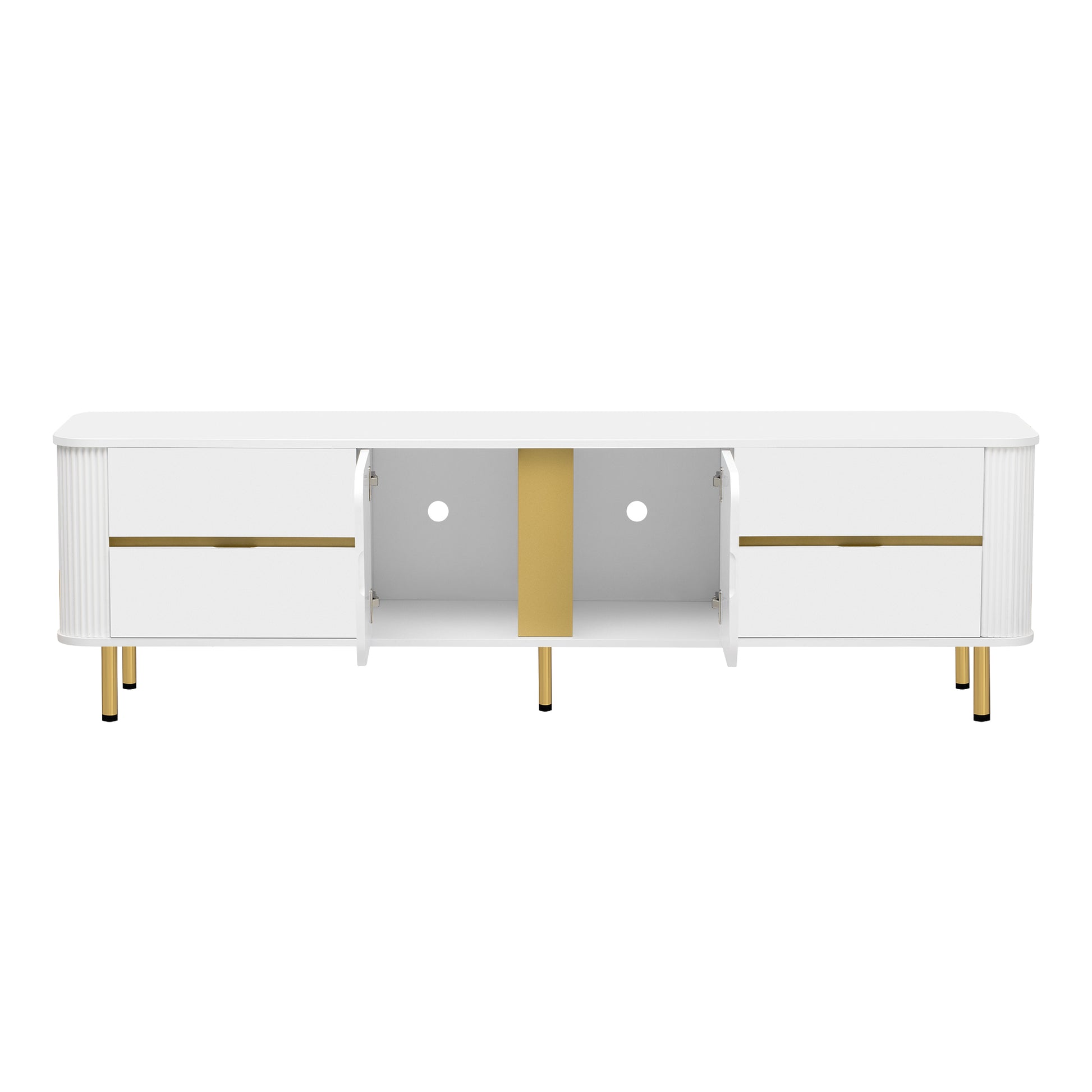 Tv Stand For Tvs Up To 80 Inches, Modern Entertainment Center Media Console With 4 Drawers And 1 Spacious Cabinet For Living Room, White White 70 79 Inches Mdf
