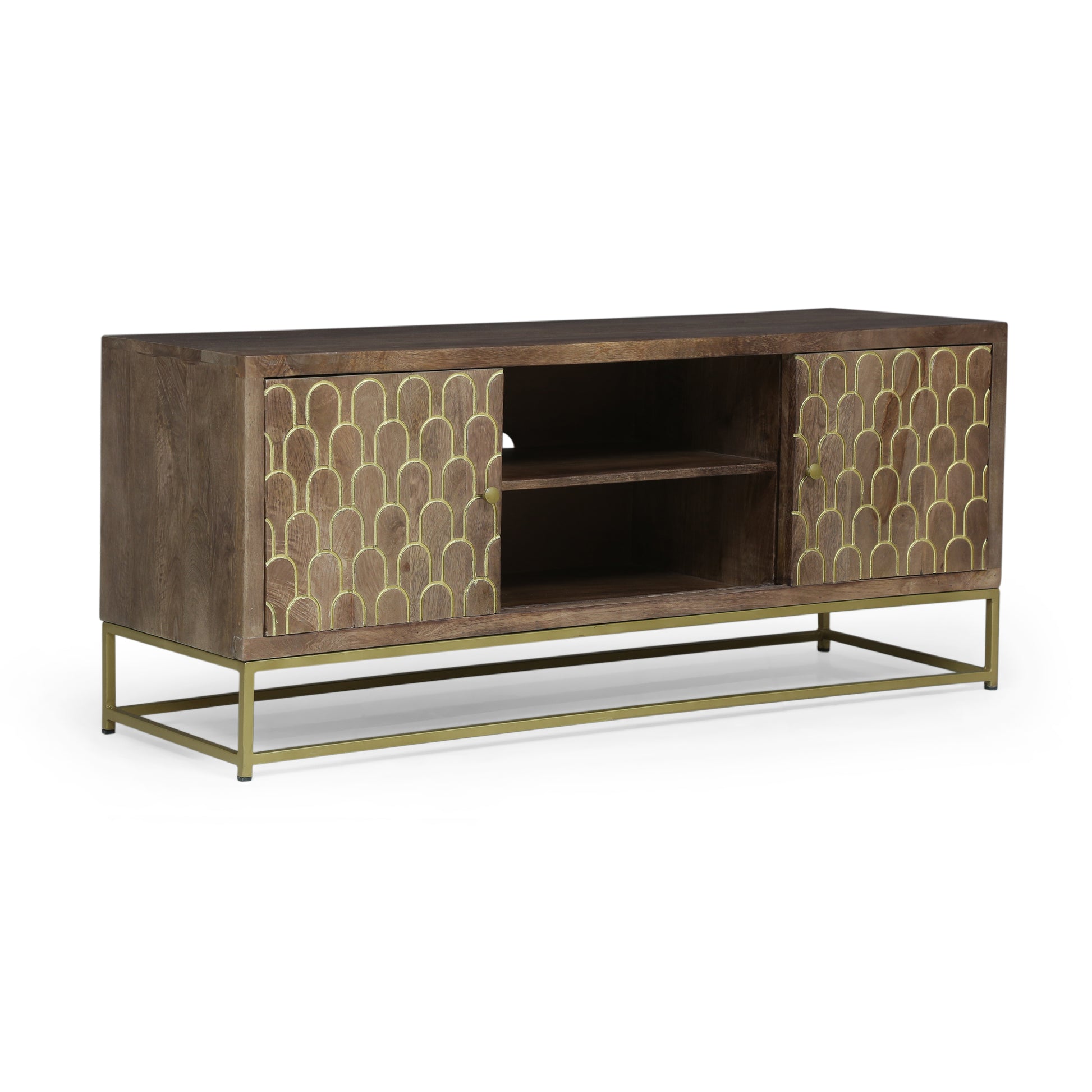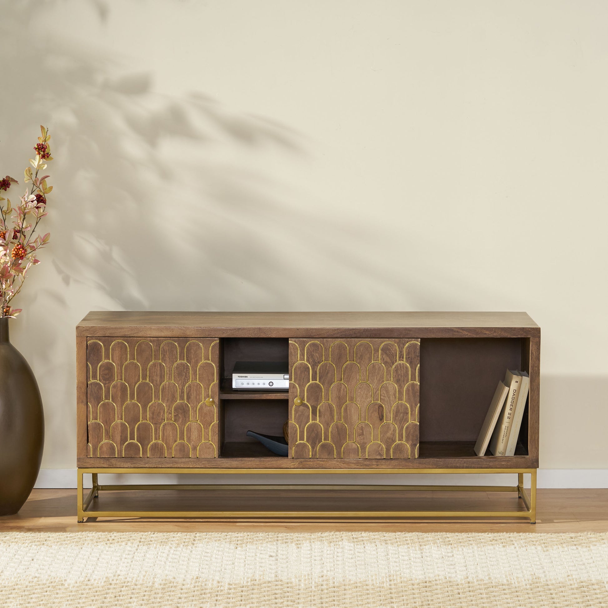 Tv Stand Walnut Gold 40 49 Inches Wood