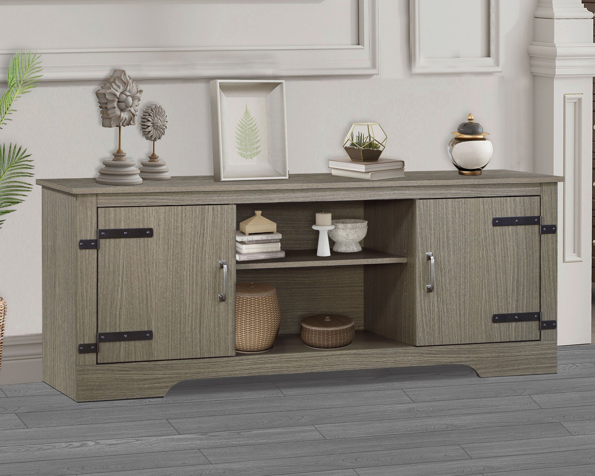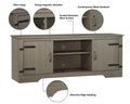 Tv Stand Walnut Wood Grain Tv Stand With Adjustable Shelves Durable Media Console With Metal Accents And Magnetic Closure For Living Room Grey 70 79 Inches Solid Wood