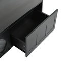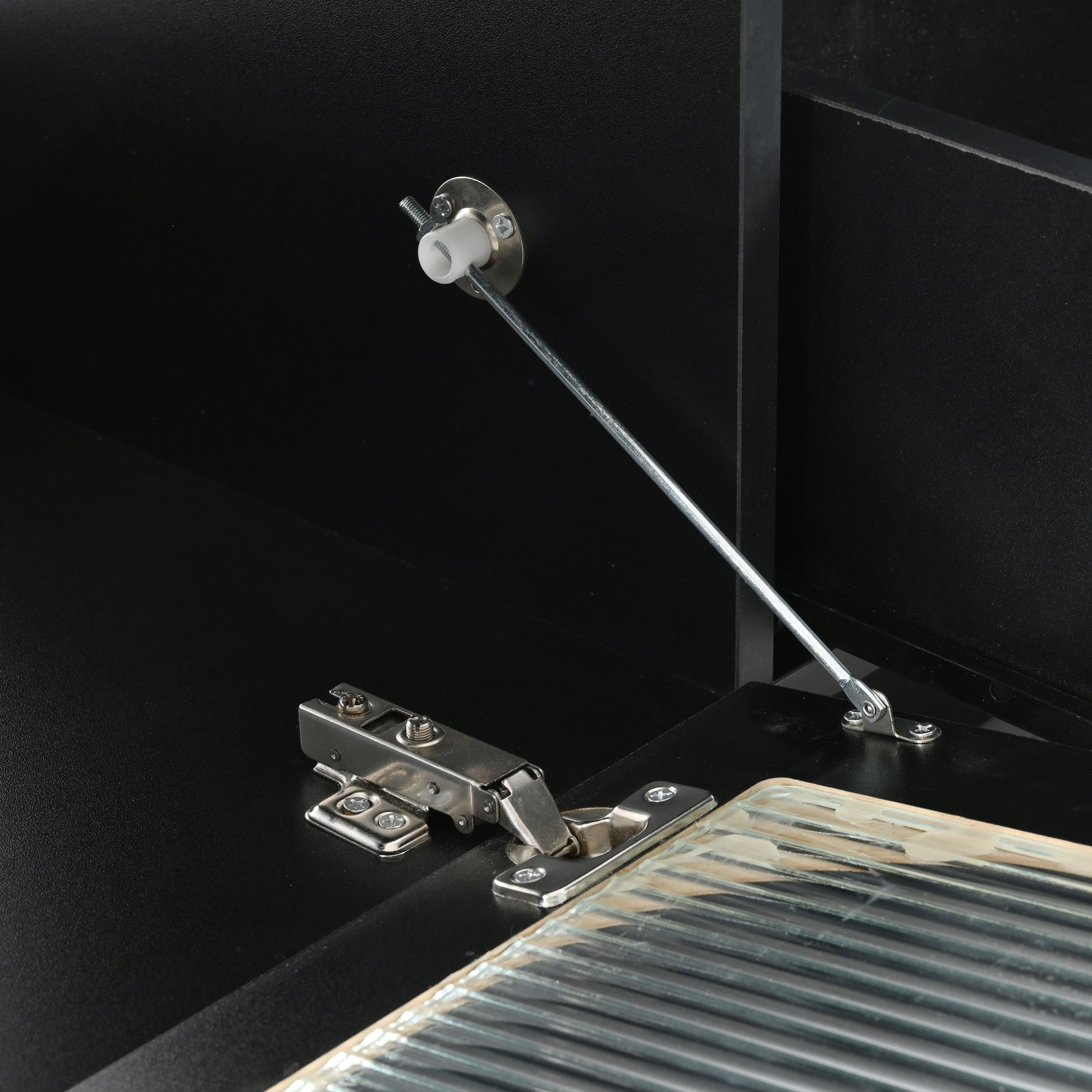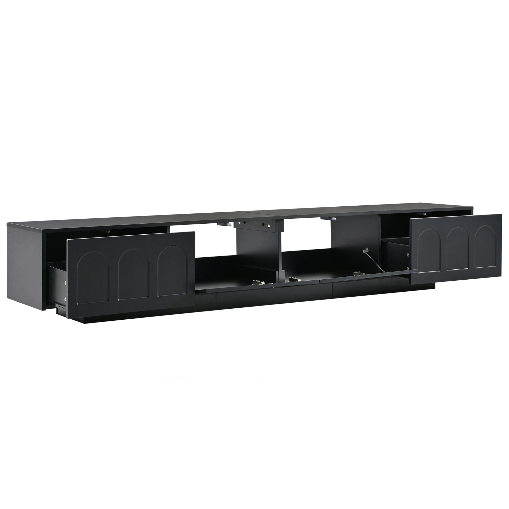 Tv Stand With Fluted Tempered Glass Doors For Tvs Up To 95'', Functional Media Console With Arched Cabinet Doors, Entertainment Center With App Controlled Led Light For Living Room, Black Black Primary Living Space 90 Inches Or Larger 90 Inches Or Larger