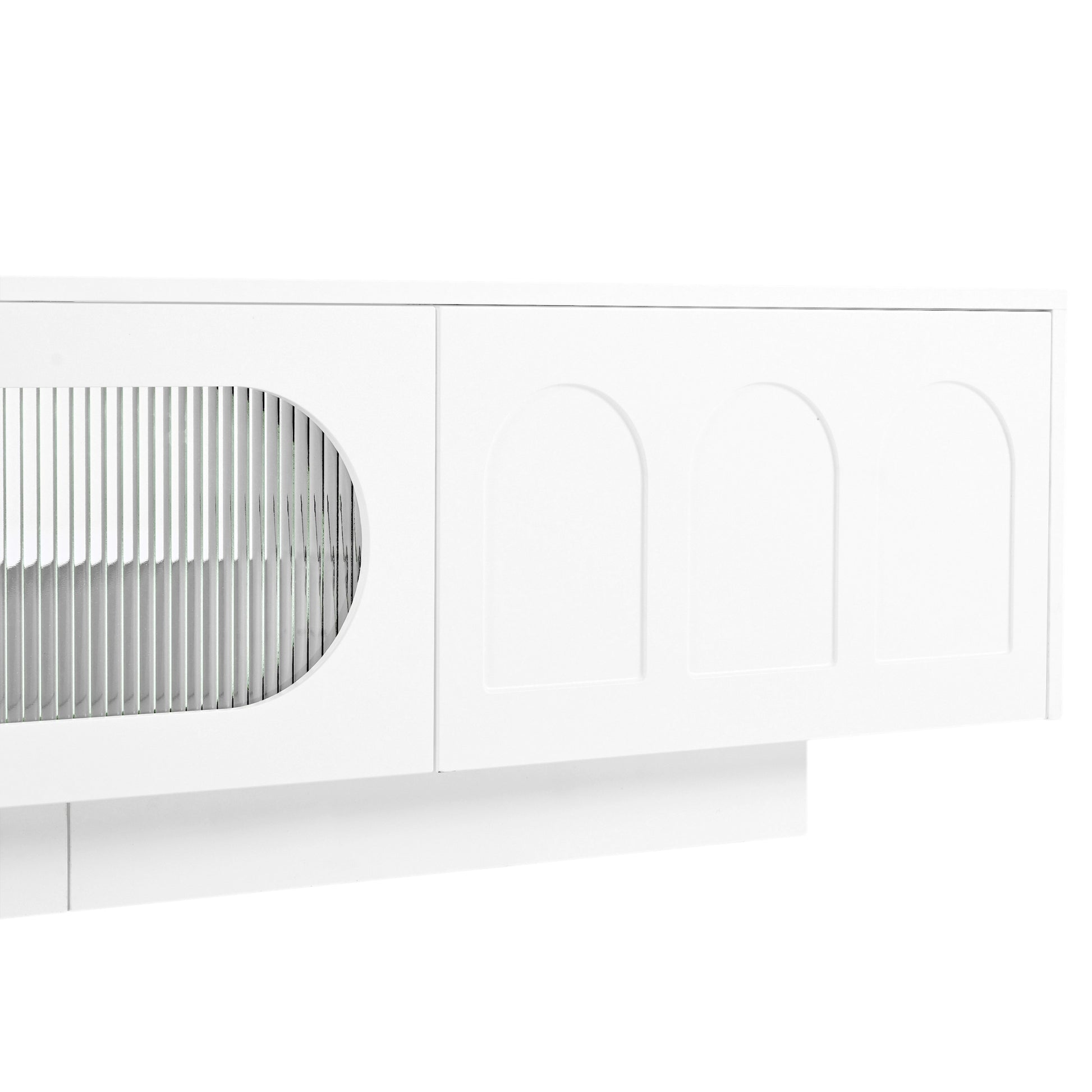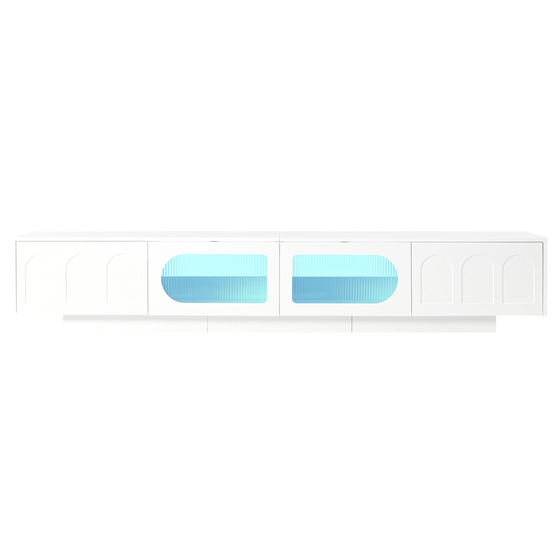 Tv Stand With Fluted Tempered Glass Doors For Tvs Up To 95'', Functional Media Console With Arched Cabinet Doors, Entertainment Center With App Controlled Led Light For Living Room, White White Primary Living Space 90 Inches Or Larger 90 Inches Or Larger