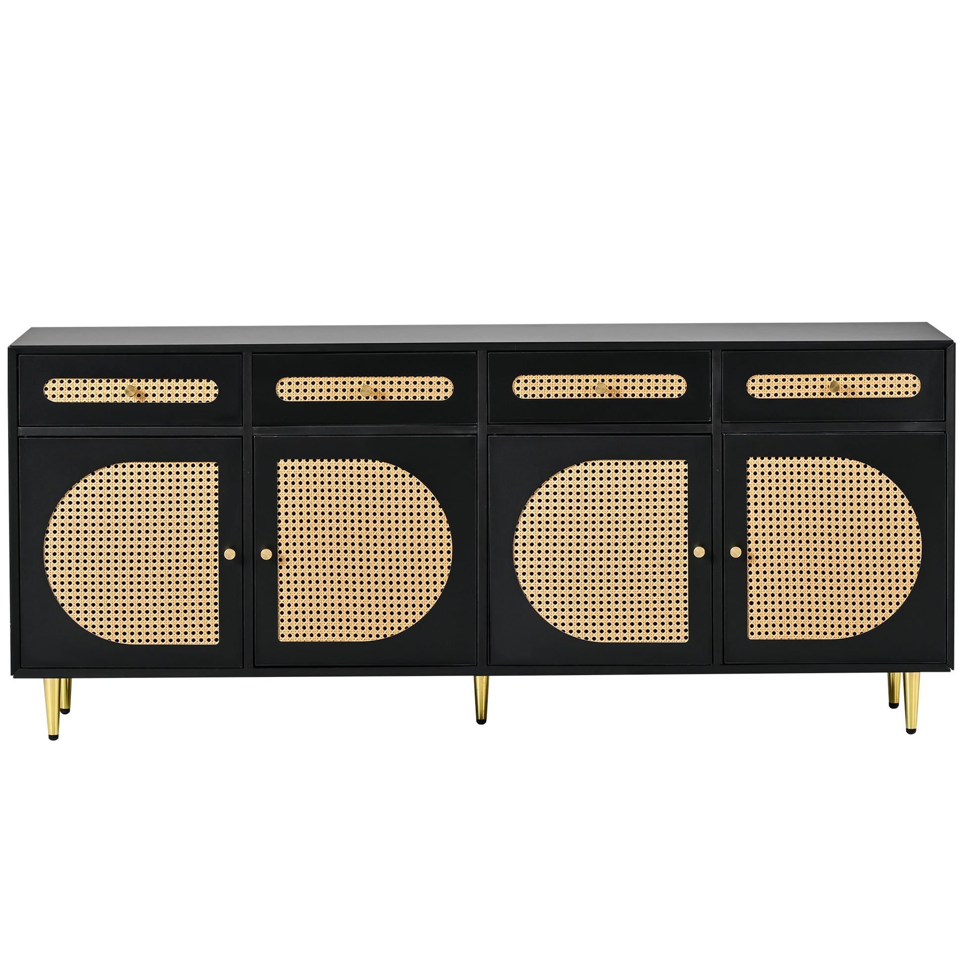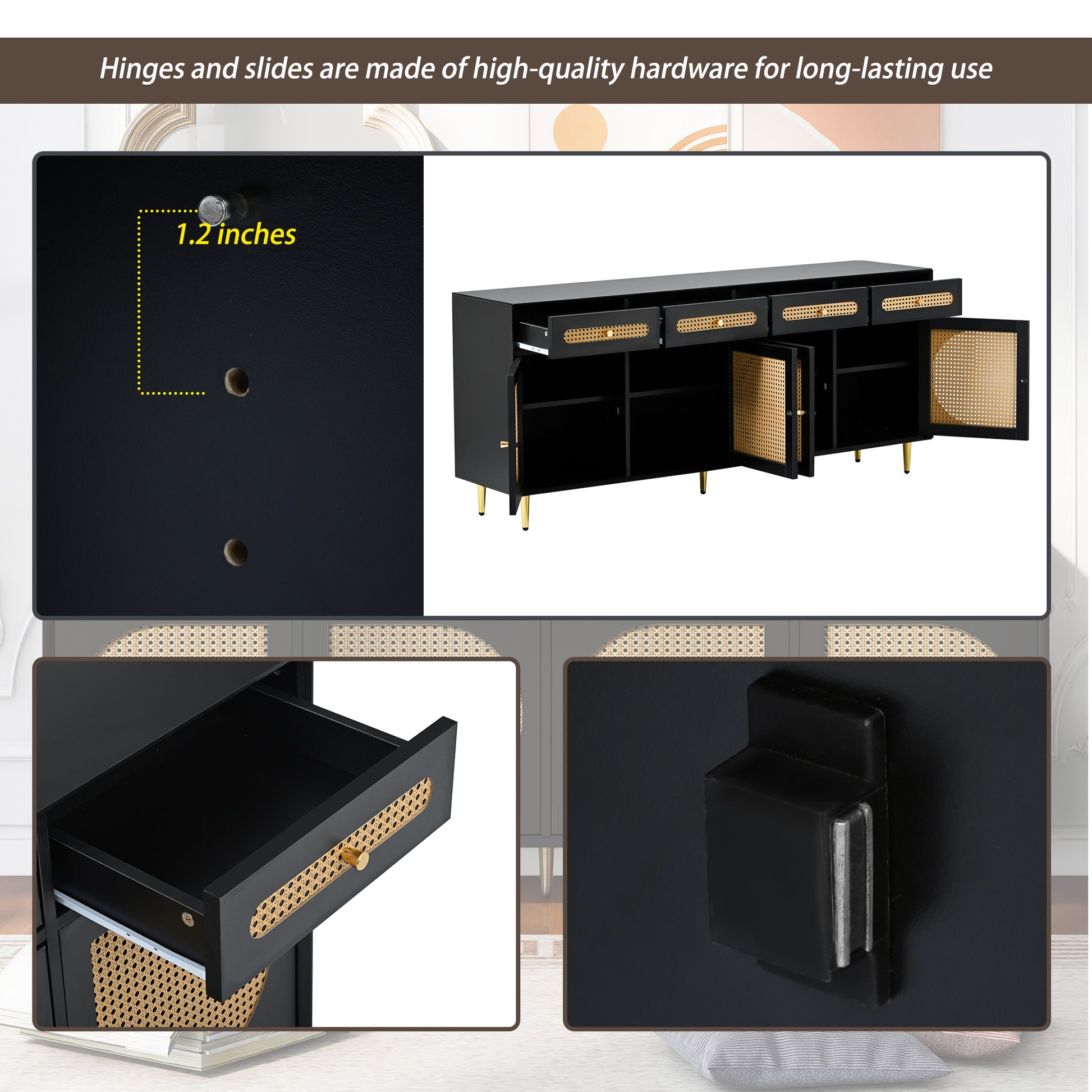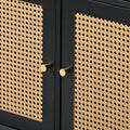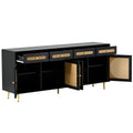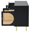 Tv Stand With Rattan Door,Woven Media Console Table With Adjustable Shelves For Tvs Up To 65",Storage Sideboard Cabinet For Living Room Black Primary Living Space Modern 60 Inches Particle Board Particle Board
