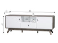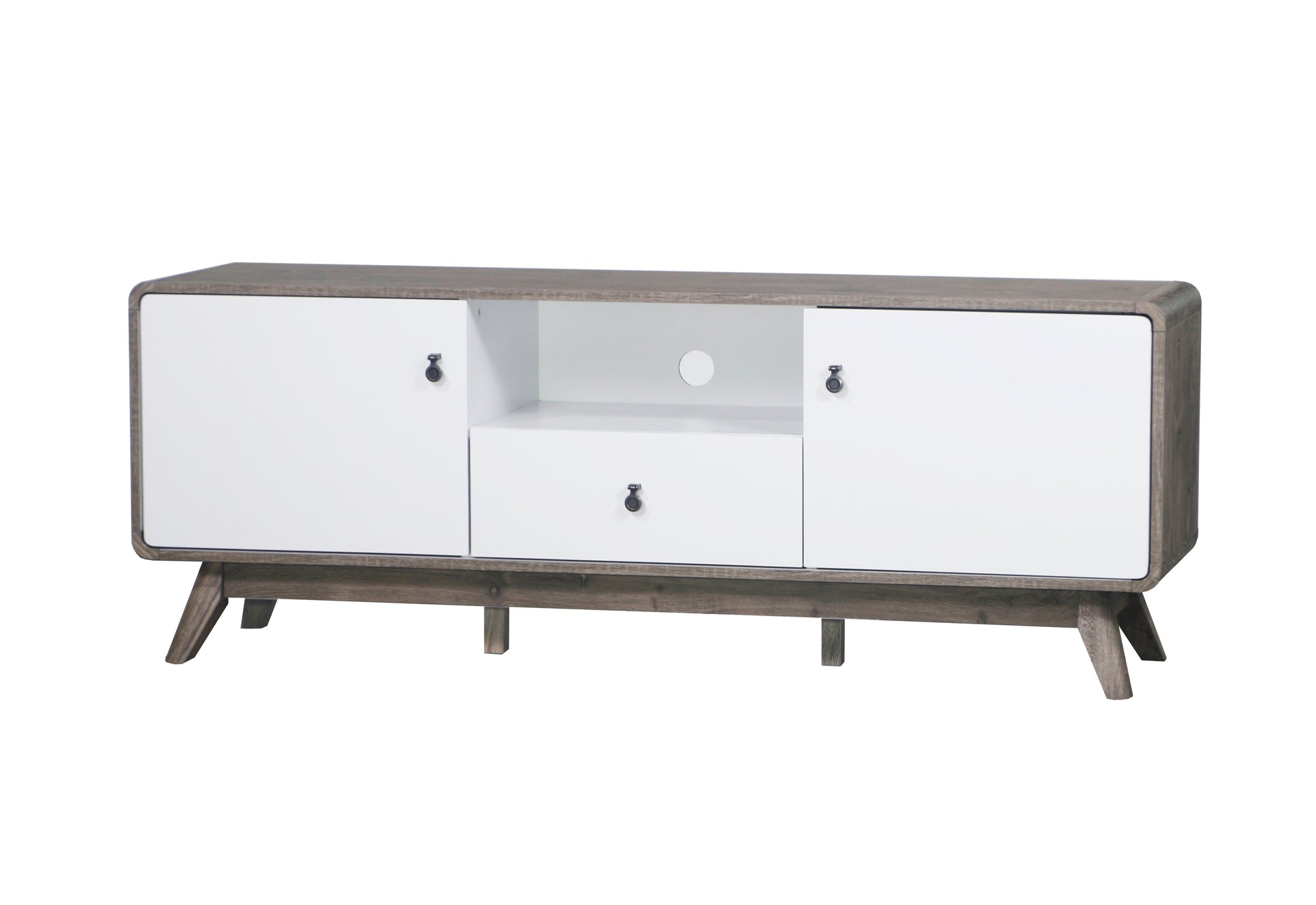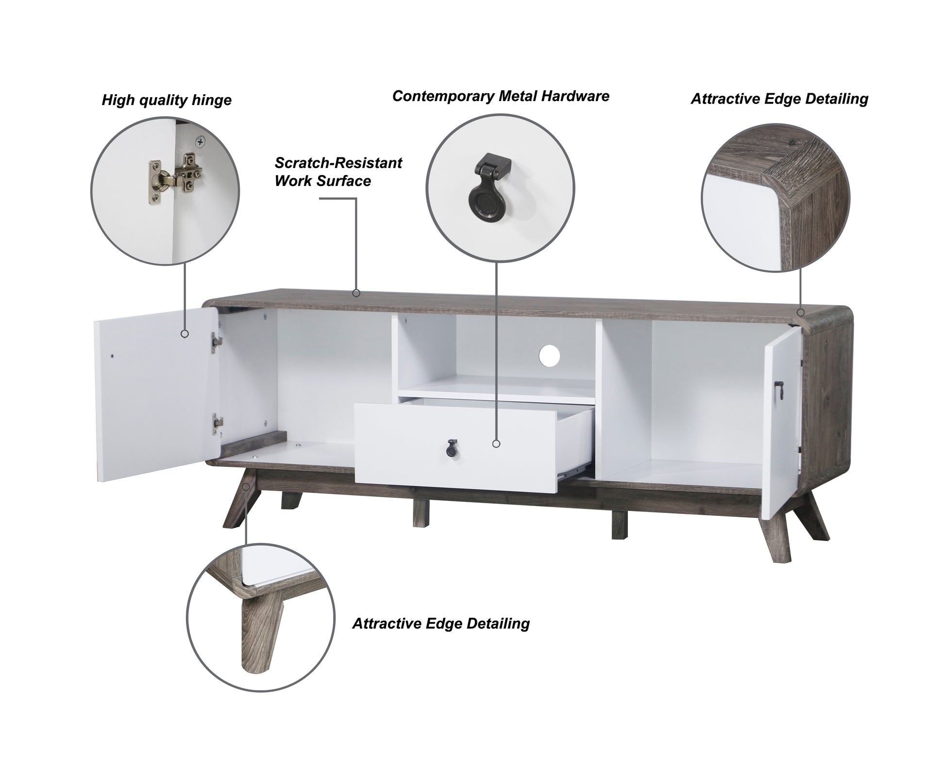 Tv Standcontemporary Two Tone Gray Oak And White Media Console Spacious Modern Tv Stand With Storage, Ideal For Living Room Entertainment Center, Fits Up To 85 Inch Tvs Warm Grey White 80 89 Inches Solid Wood