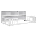 Twin Floor Bed With Bedside Bookcase,Shelves,Guardrails,White Twin White Bedroom American Design Pine