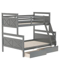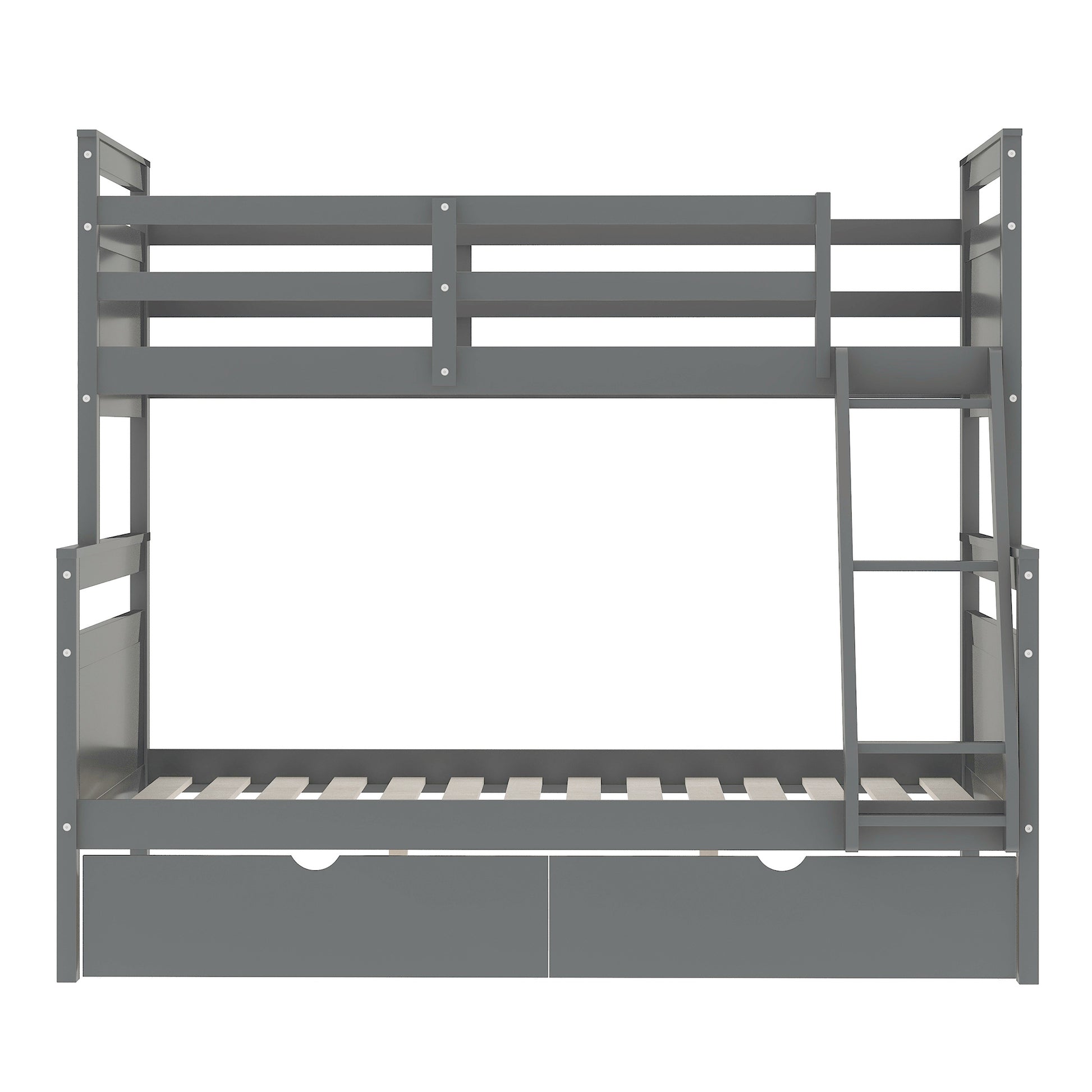 Twin Over Full Bunk Bed With Ladder, Two Storage Drawers, Safety Guardrail, Gray Twin Box Spring Not Required Gray Bedroom Bunk Pine
