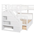 Twin Over Full L Shaped Bunk Bed With 3 Drawers, Ladder And Staircase White White Solid Wood