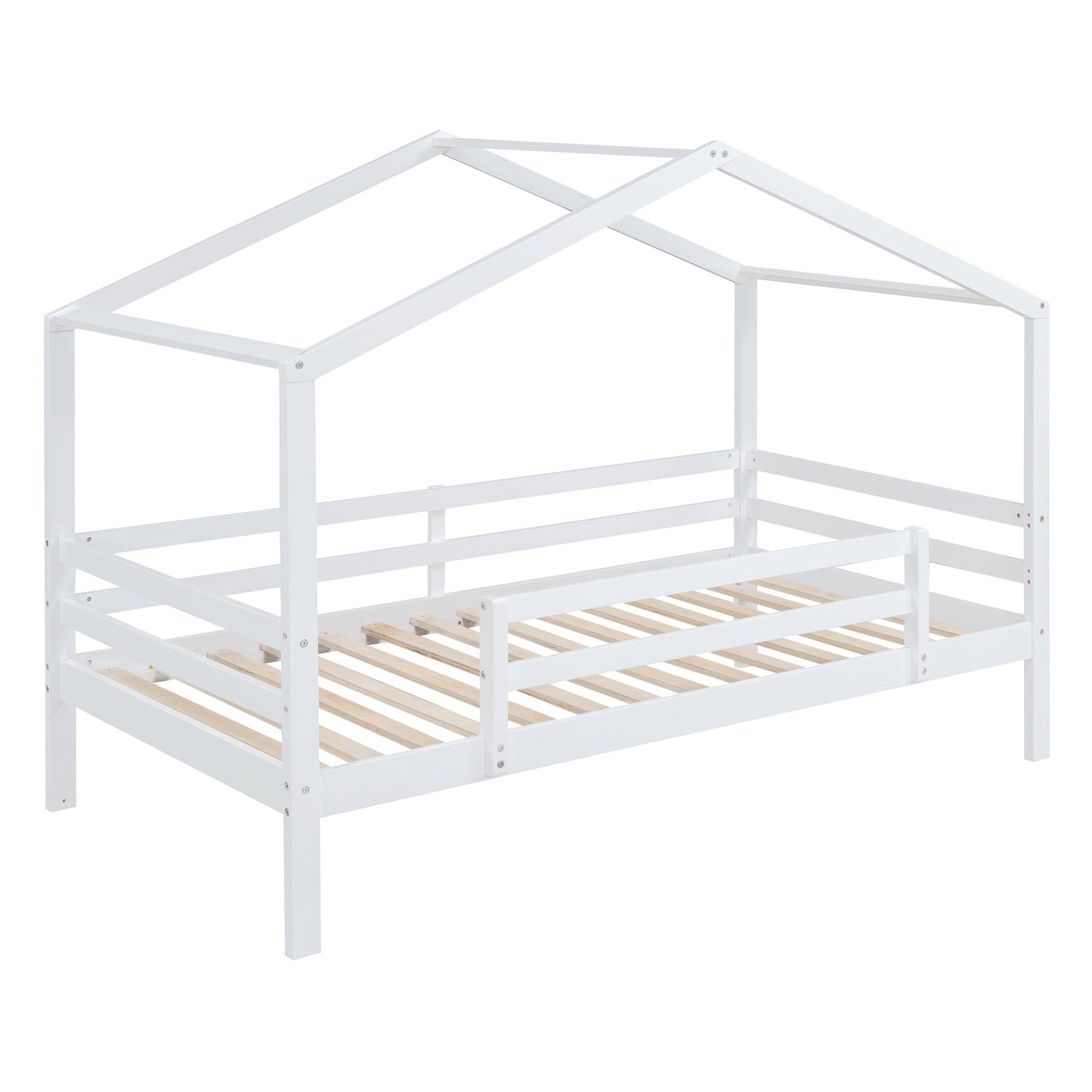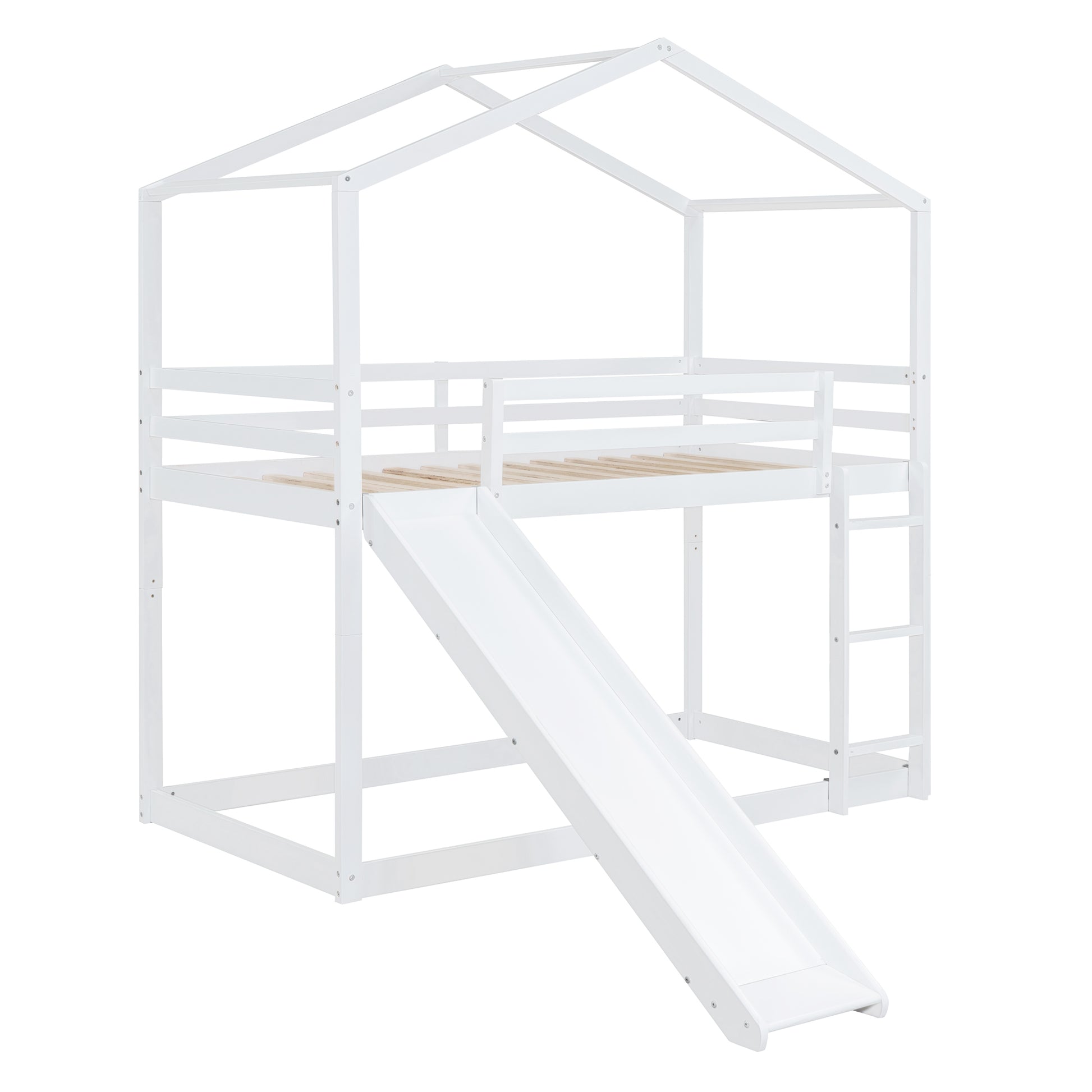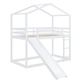 Twin Over Twin Bunk Bed With Roof, Slide And Ladder, White Twin White Solid Wood