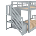 Twin Over Twin Floor Bunk Bed, Ladder With Storage, Gray Twin Gray Pine