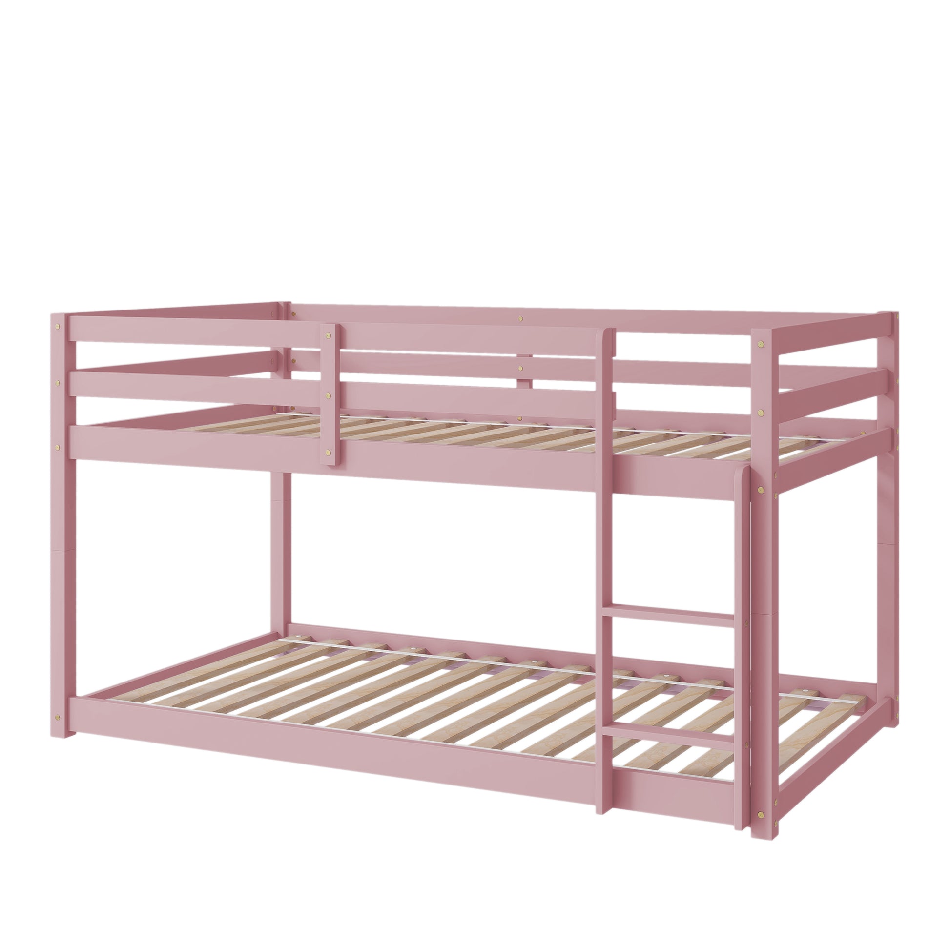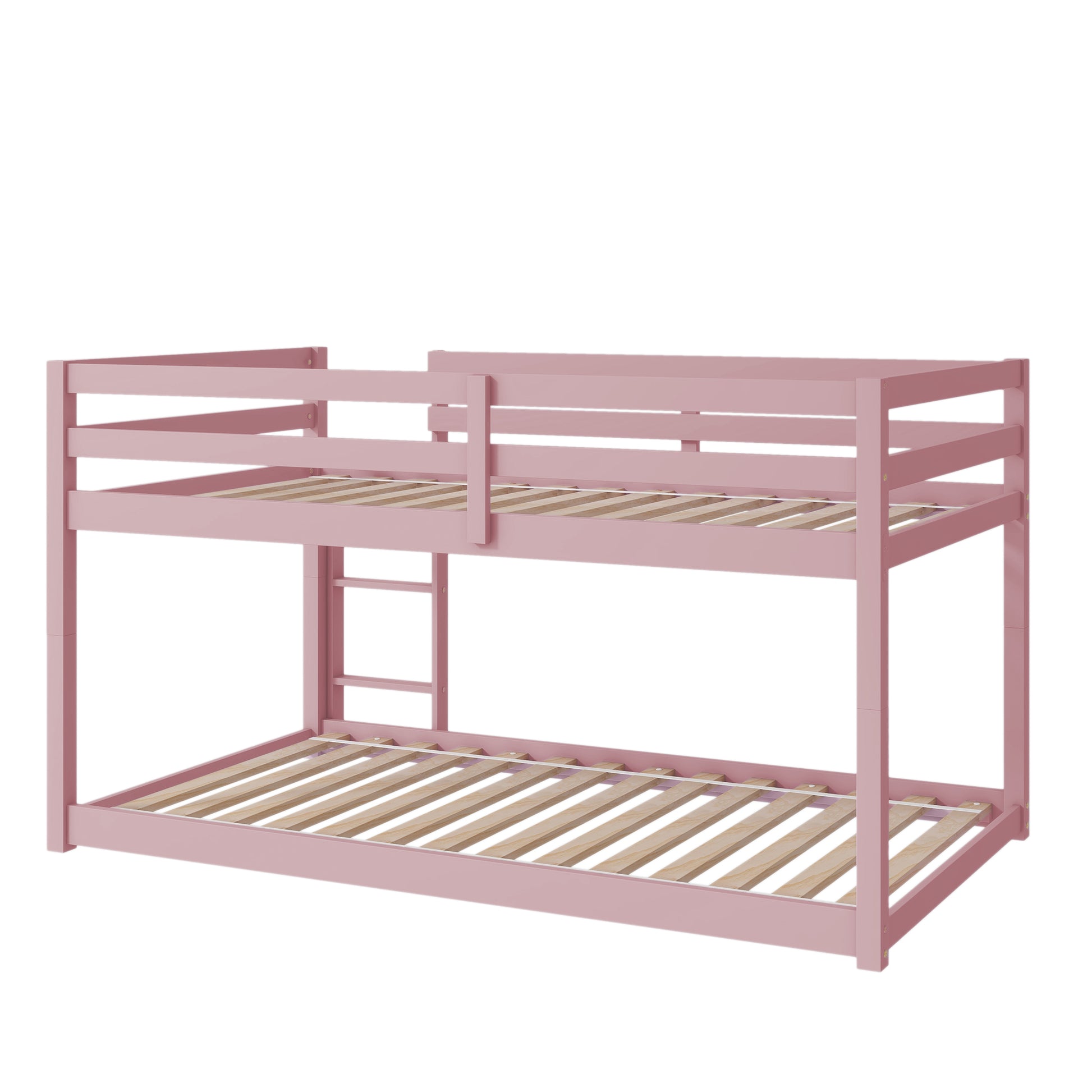 Twin Over Twin Floor Bunk Bed,Pink Twin Pink Pine