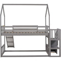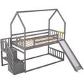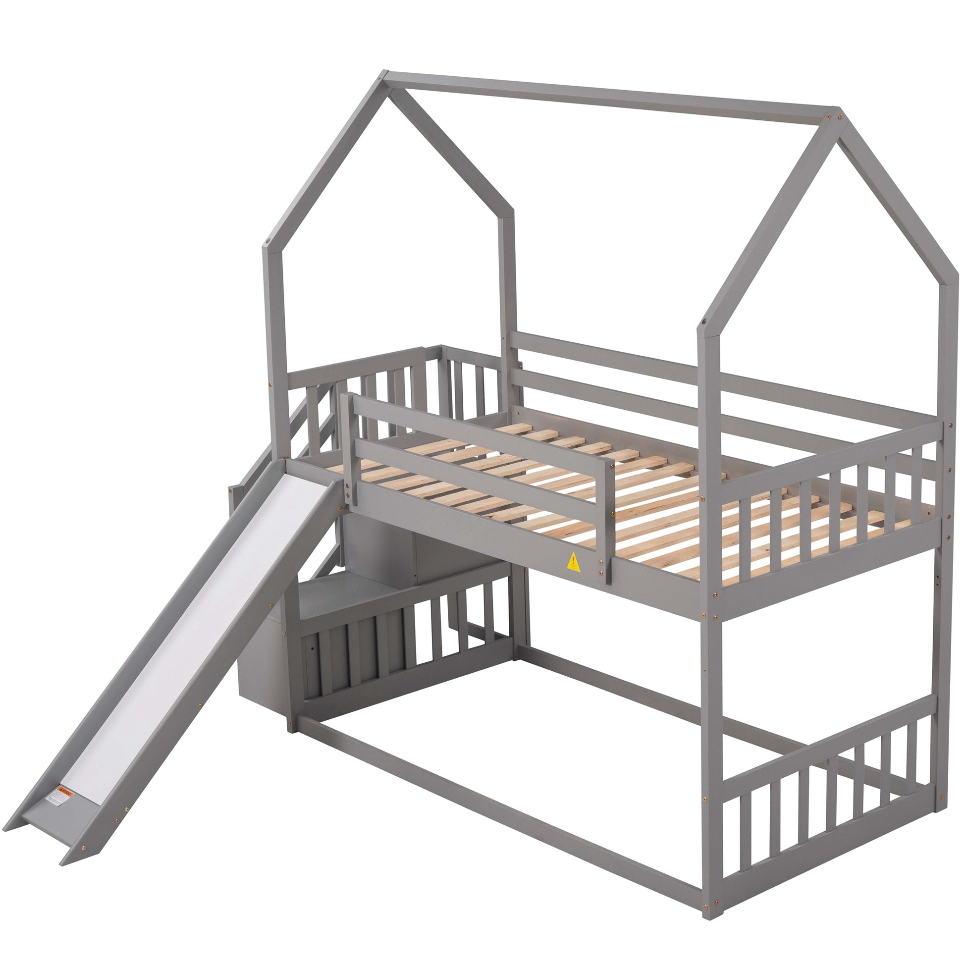 Twin Over Twin House Bunk Bed With Convertible Slide,Storage Staircase Can Be Placed Left Or Right,Gray Gray Pine
